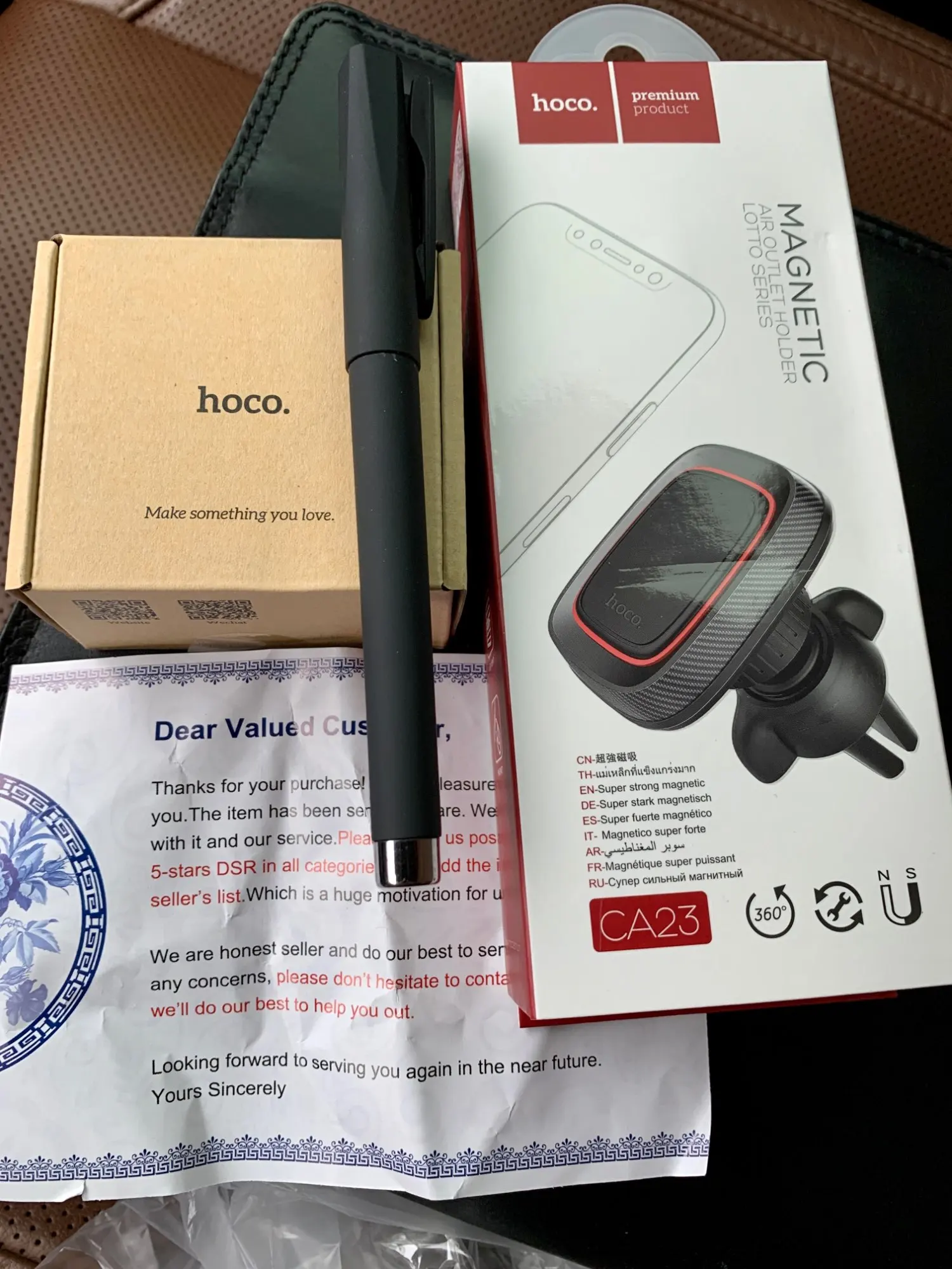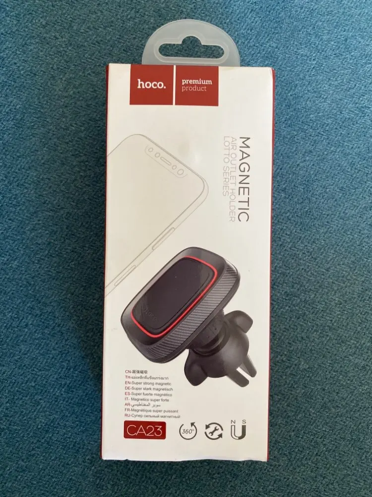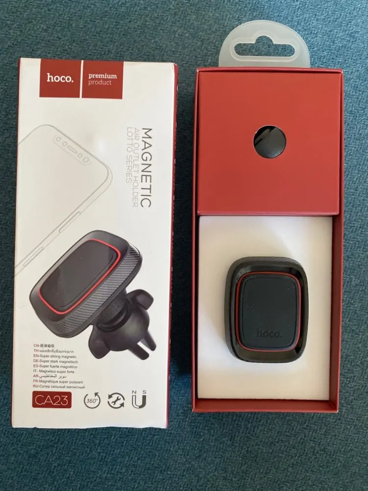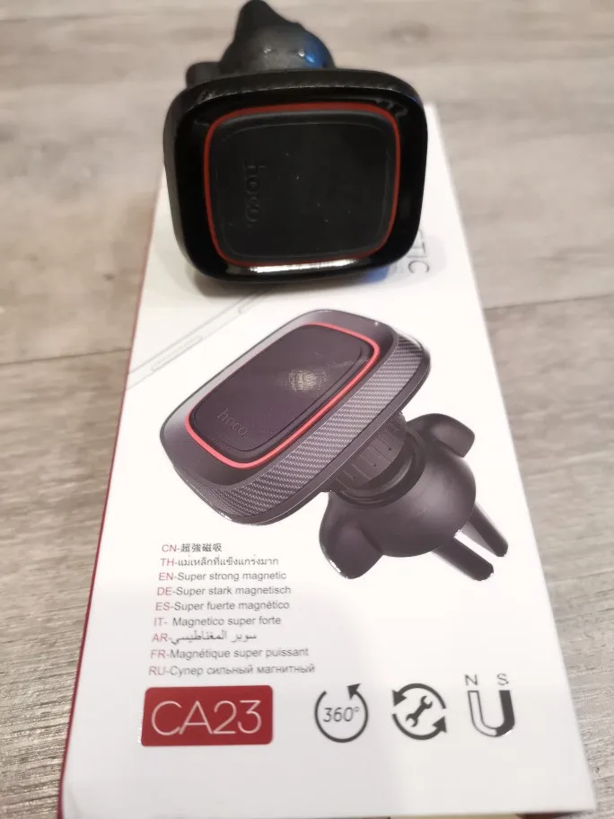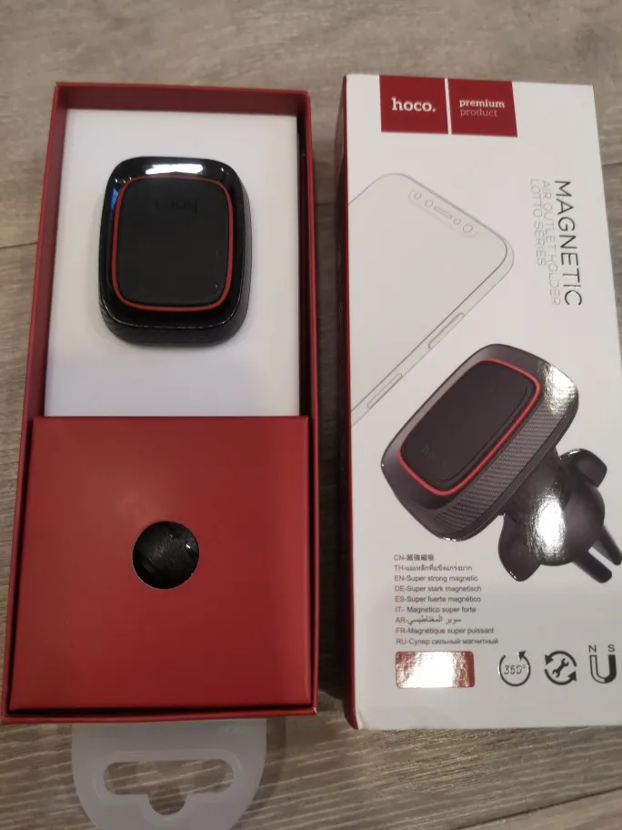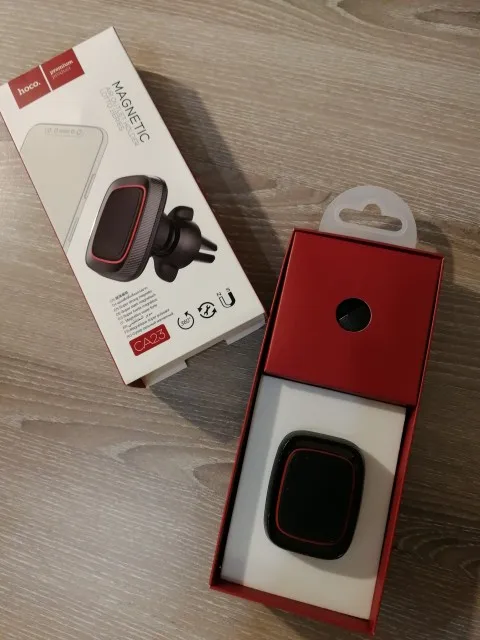 Товар шел очень долго, но в итоге дошел. Держатель очень хороший. У него крепление на воздушные решетки, пожалуй, одни из лучших что я до этого встречал. Держится очень уверенно. Магнит тоже достаточно сильный, чтобы держать iPhone XS Max за металлическую пластину. В целом покупкой доволен и продавца рекомендую. Но если ждать долго не хотите, выбирайте способ доставки отличный от Seller’s Shipping Method. Отдельная благодарность за подарок! Продавец положил в посылку отличную гелевую ручку с логотипом Hoco. Спасибо!