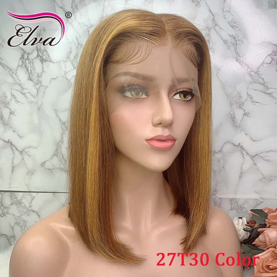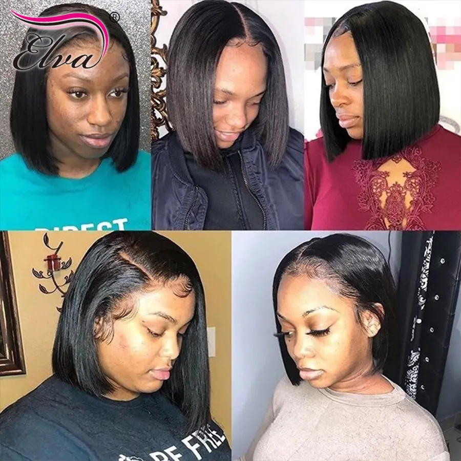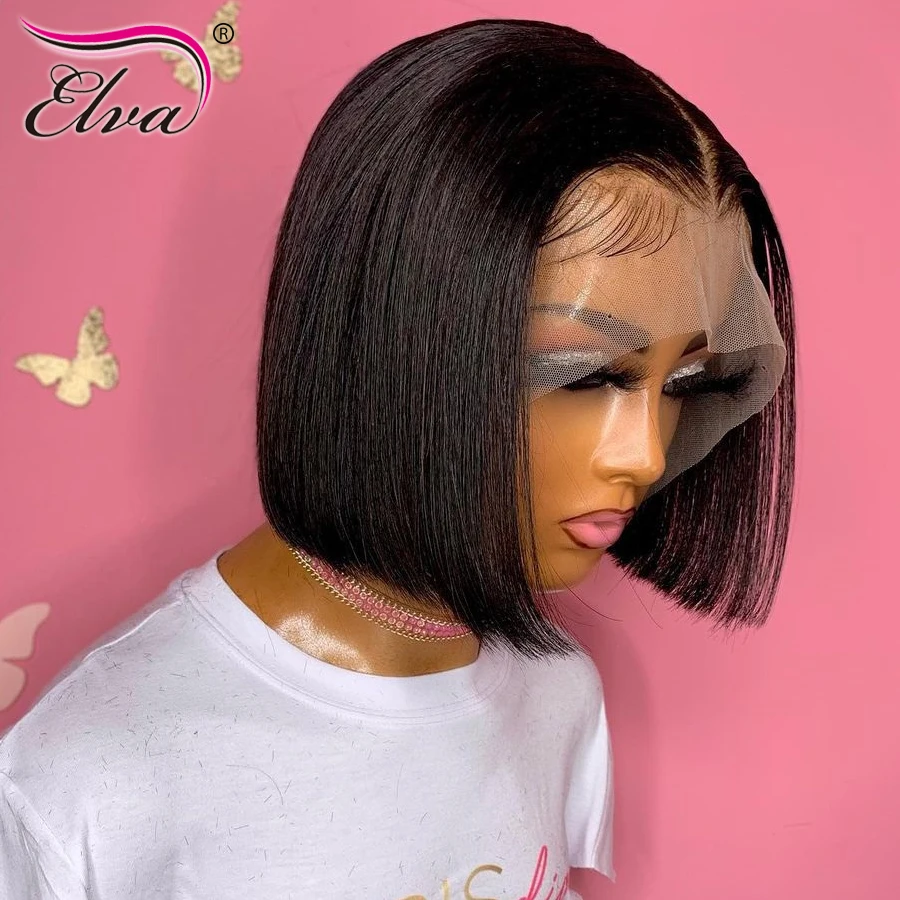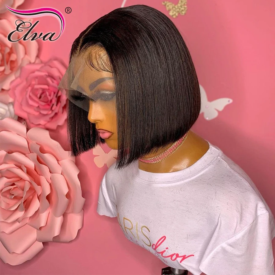 13x6 человеческие волосы на шнурке, парик Elva Bob, Короткие парики на шнурке, Экстра про. Соотношение, волосы Remy, 150% парик Боб, предварительно выщипанные Детские волосы