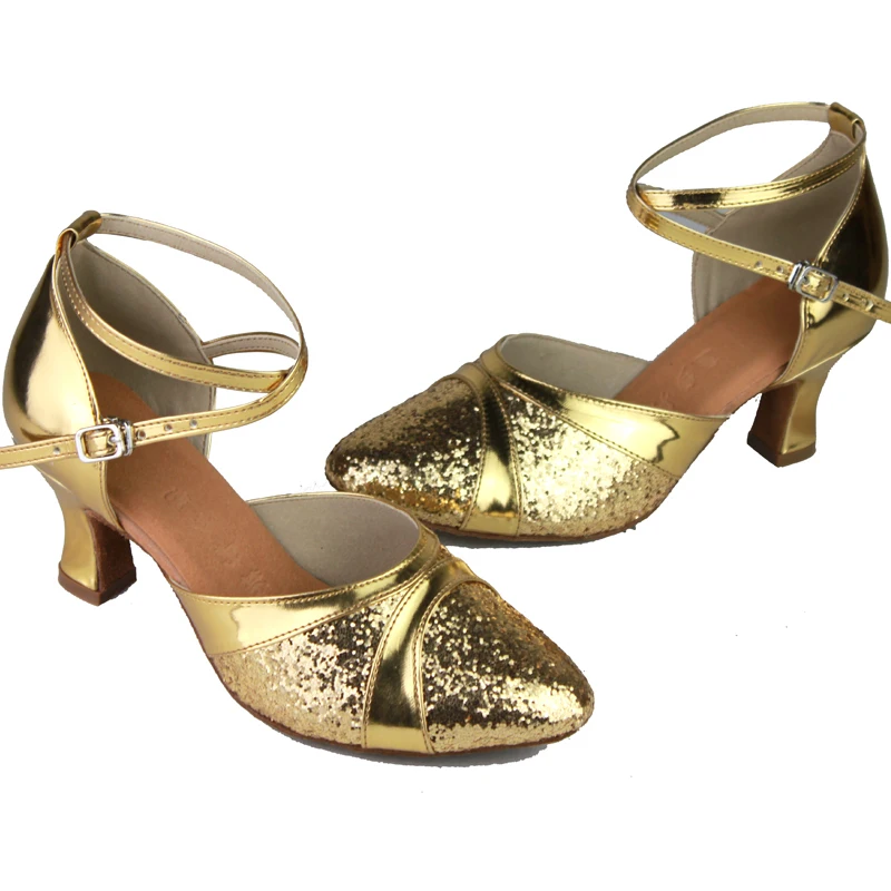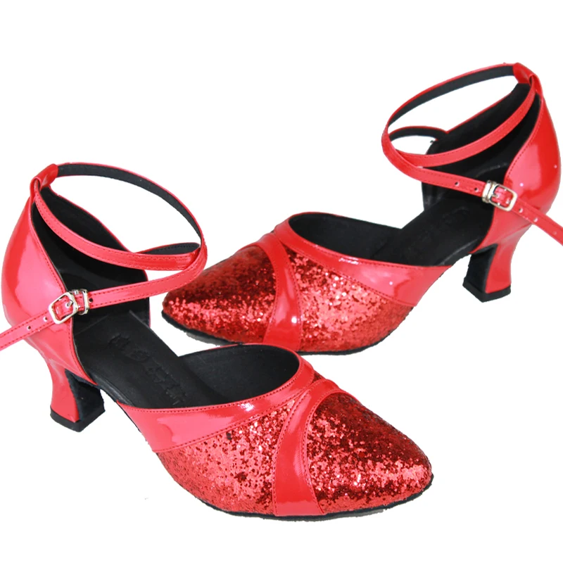 Женские туфли для танцев HXYOO для сальсы, танцевальные туфли Красного, серебристого, золотистого, черного цветов с блестками из искусственной кожи GM010