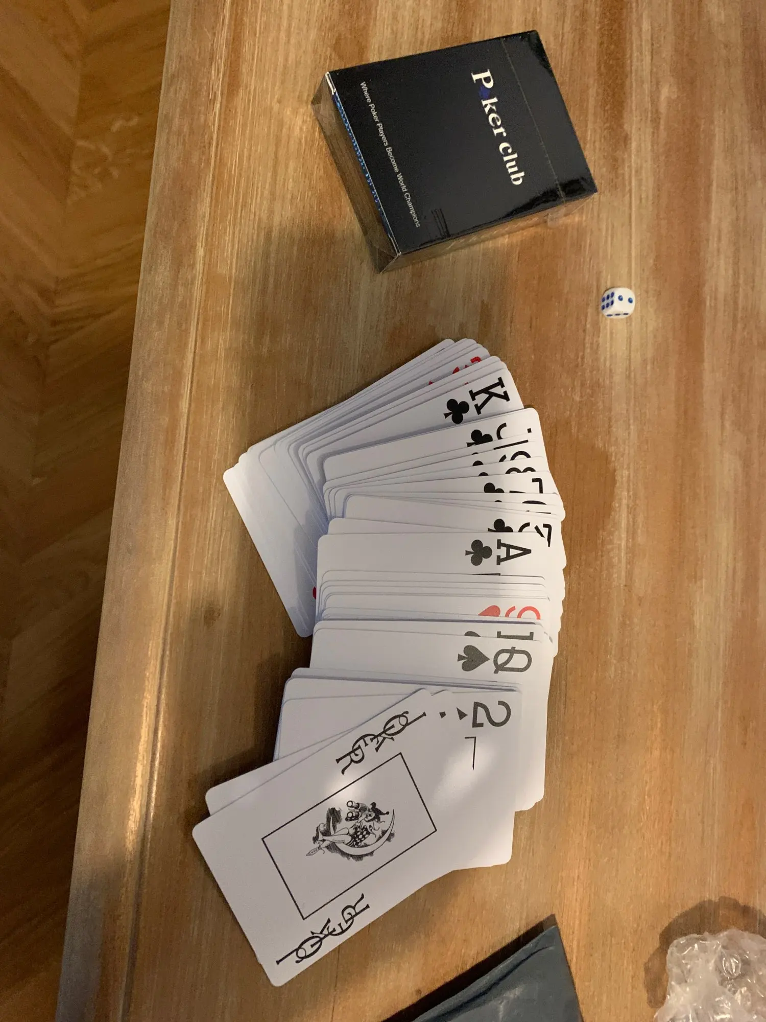 Шло около 20 дней. В подарок пришла игральная кость. Товар на ощупь приятный, катается хорошо, хо это как обычно первое время. Заказал две красные колоды, ибо выходило дешевле. К тому же если с одной колоды карта потеряется, то можно будет спокойно заменить. Масти как и полагается игральным картам для покера - большие