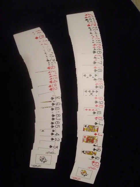Хорошие карты, не идеальные. Чуть чуть видна неровность карт. Для домашнего покера сойдет. А вот для игры с профессионалами на большие деньги не сгодятся. 3.5 из 5 моя оценка.