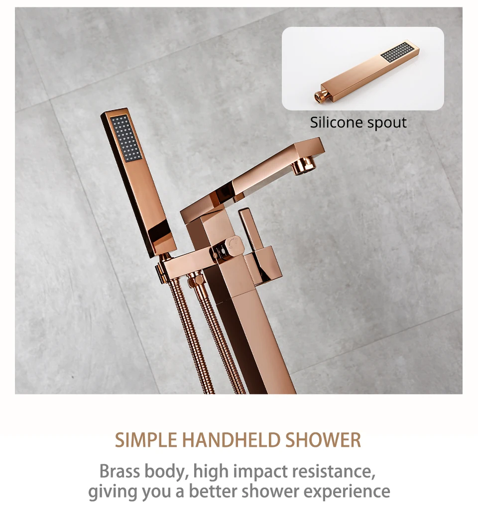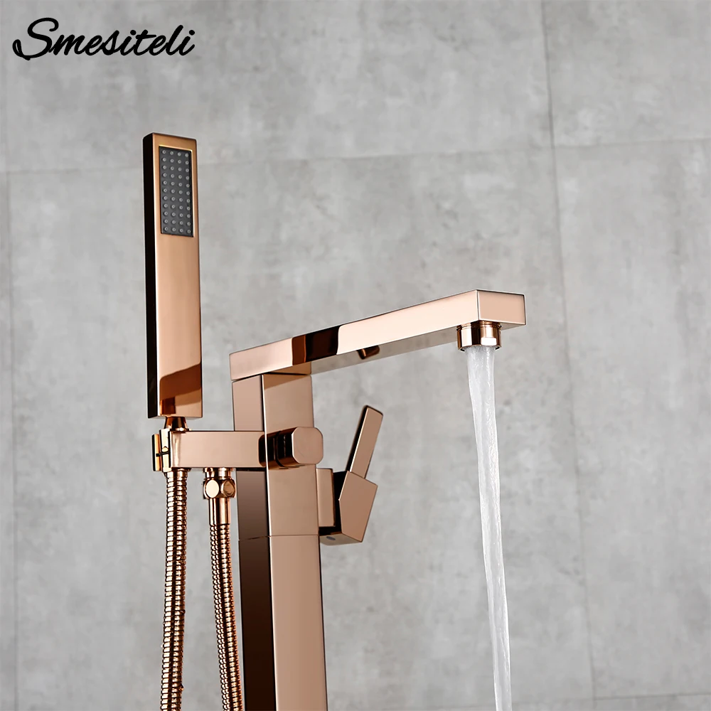 Смеситель для ванны Smesiteli, роскошный напольный носик для ванны, с ручкой для душа, матовый черный цвет, для холодной и горячей воды