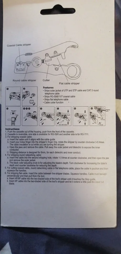Заказ пришел быстро... К доставке и упаковке претензий нет... А вот сам "инструмент" - вещь абсолютно бестолковая... и ненужная.. Изоляцию провода срезает вместе с самим проводом или его частью.... Простой хозяйственный нож или бокорезы намного эффективнее. ... и безопаснее для самого провода.. Бестолковая покупка...Напрасно выброшенные деньги...