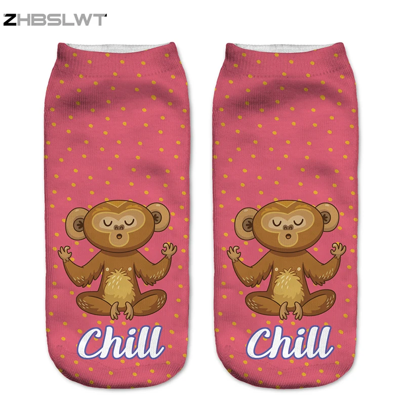 ZHBSLWT, новый дизайн, женские носки, медитация, обезьяны, 3D печать, низкие носки, Мультяшные хлопковые носки