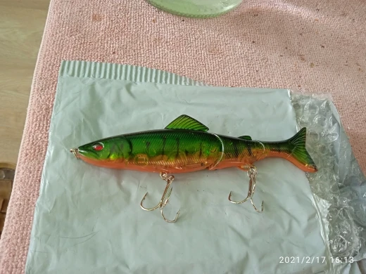 товар пришёл довольно таки быстро,в течении месяца,в объединённой посылке,упакован надёжно,продавец отзывчивый,выполнил все пожелания,за что достоин высокой оценки.качество вполне удовлетворительно,но крючки всё таки сменю на более крупные,которые заказал тут же на Али экспресс.испытывать водой придётся только весной-осенью,но,судя по обзорам с Ютуба приманка вполне рабочая.