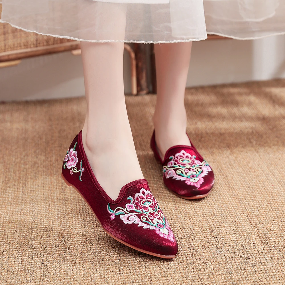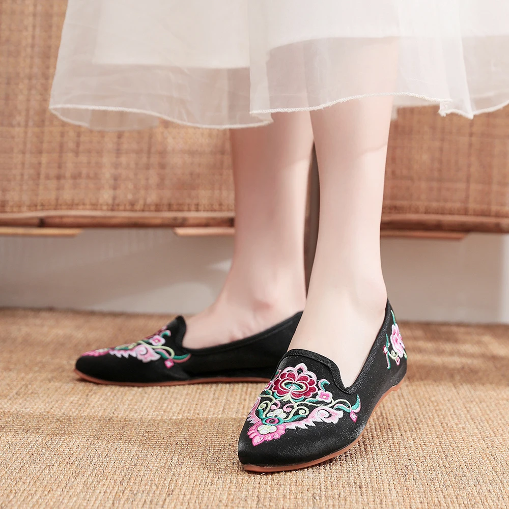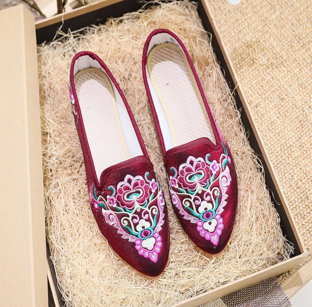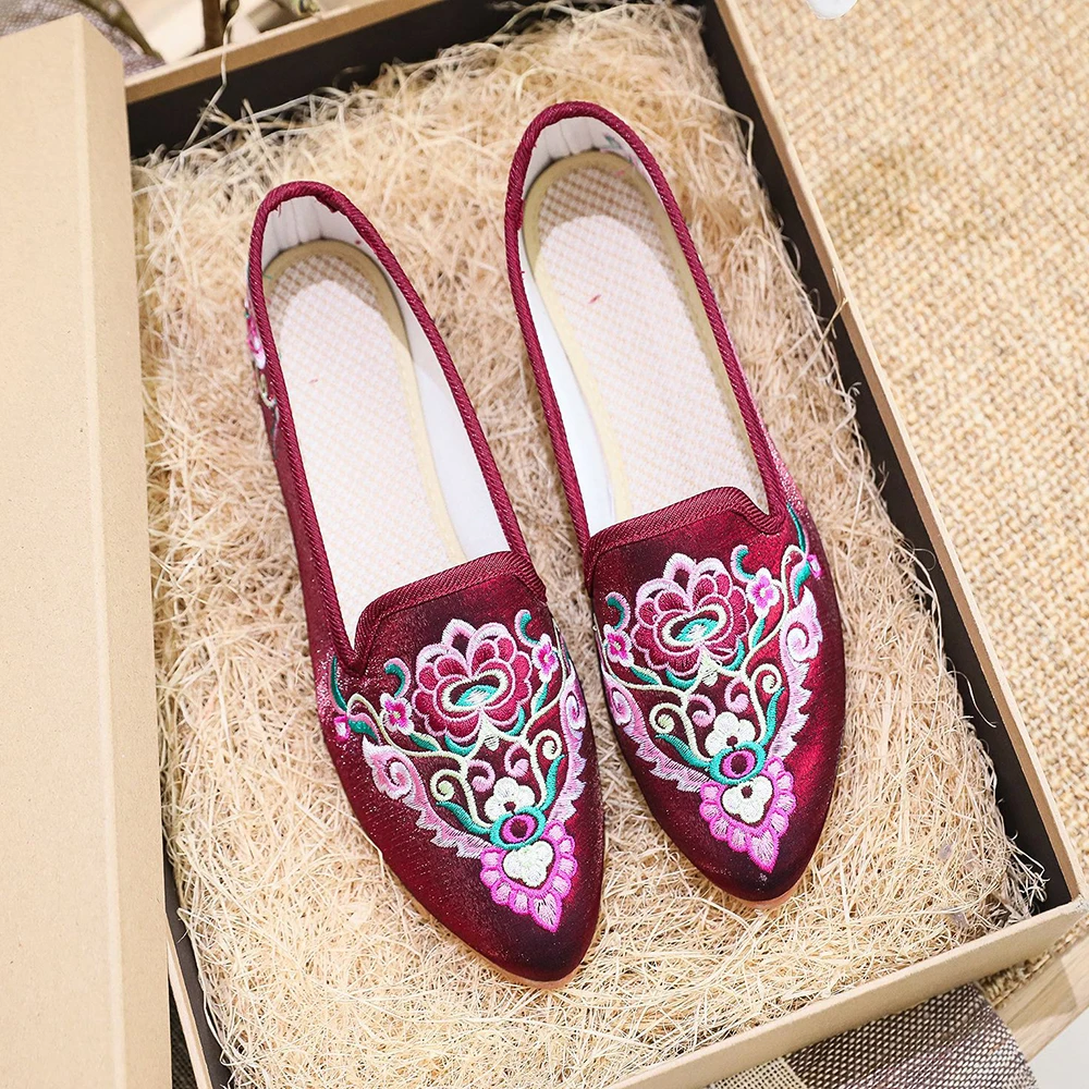 Veowalkженские балетки ручной работы; Красивые балетки в народном стиле с вышивкой; Удобные обувь из мягкой парусины на плоской подошве в стиле старого Пекина