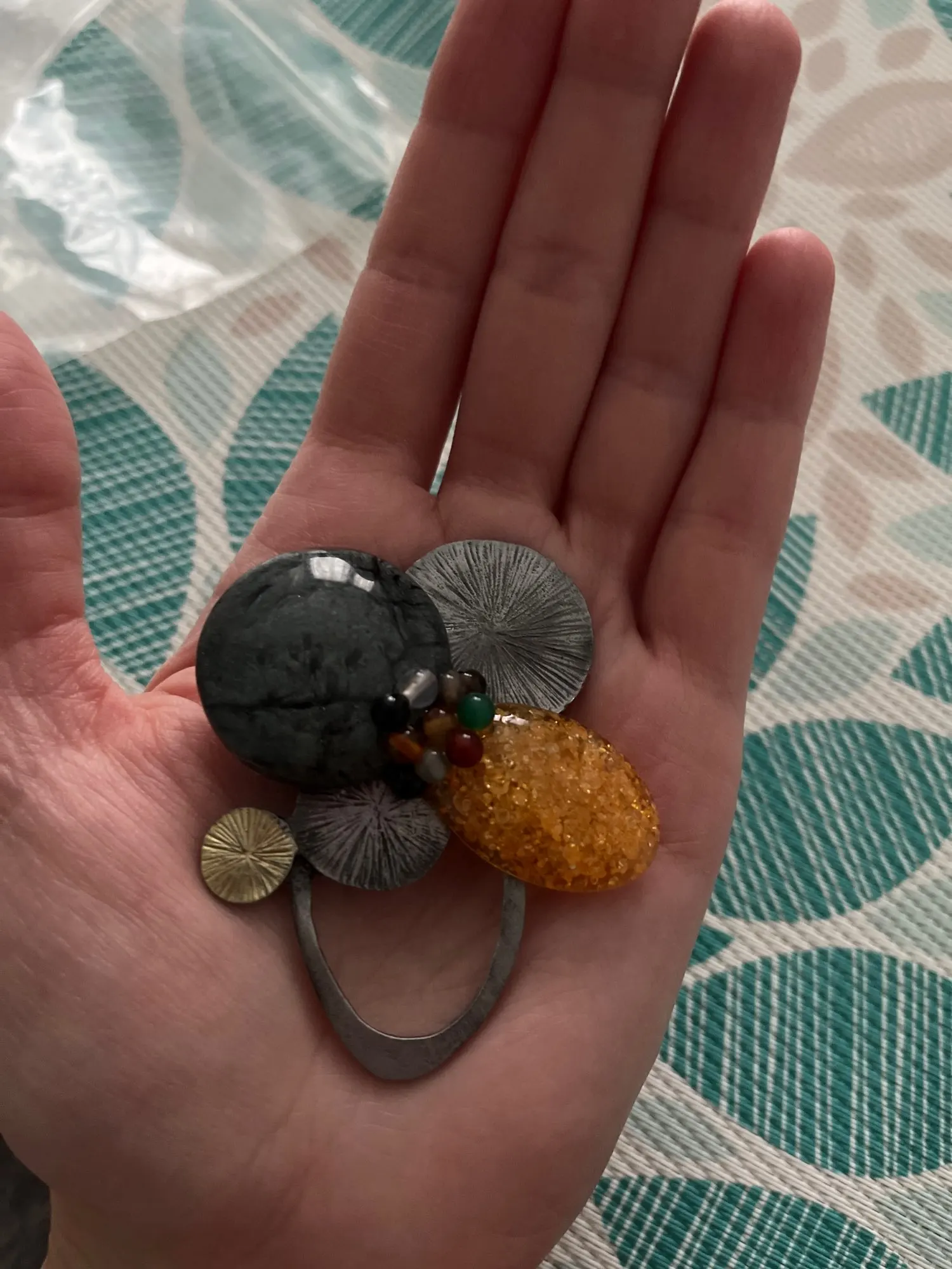 брошь пришла,очень обидно,маленькие бусинки при транспортировке оторвались