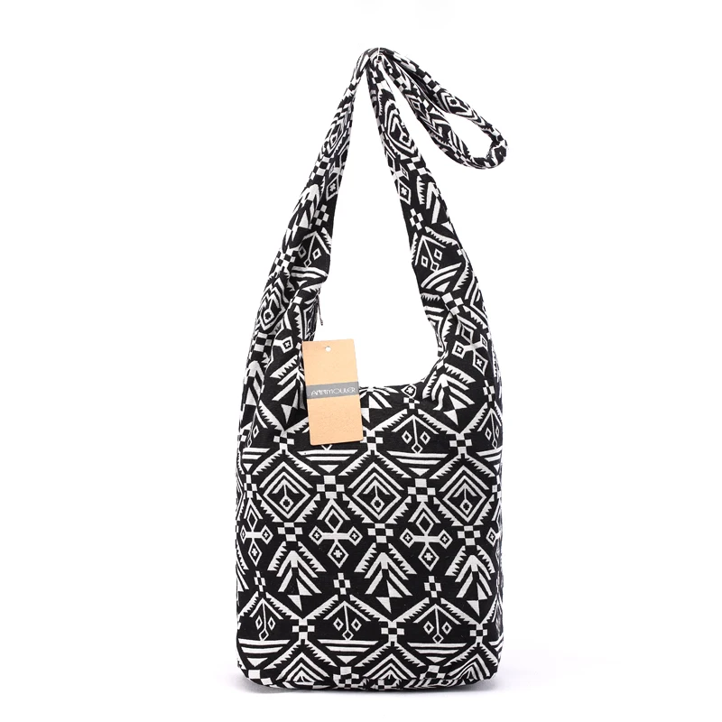Женская сумка через плечо, из хлопка, черного и белого цветов