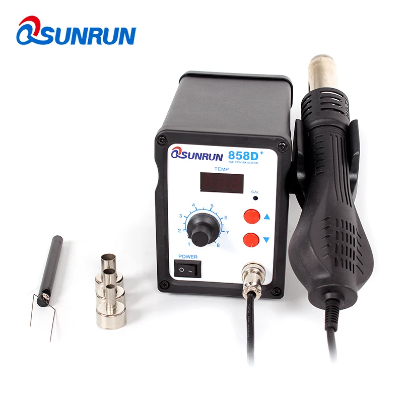 Паяльная станция Silver 858D для распайки горячего воздуха, пистолет горячего воздуха для ремонта + 3 насадки + 1 палочка с интегральной схемой, сварочный инструмент