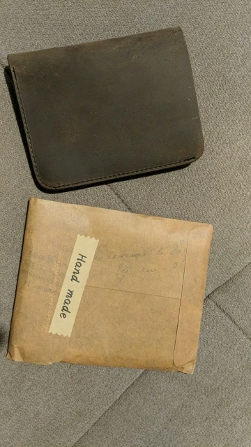 Ну чтож, кошелёк пришёл описанию в принципе соответствует.. Сильный запах химии.. На счёт кожи какие-то сомнения... Крошится почему то как будто, волокна.. И вид какой-то сырой у кожи, я как-то не привык видеть изделия из кожи такими.. Как в эксплуатации себя покажет, посмотрим.. Брал для эксперимента на перепродажу, но что-то сомневаюсь... Так на вид конечно на картинке он лучше чем в реале... В общем не очень доволен.. Мог бы думаю быть и подешевле, рублей 3а 400.. 25 дней шёл...