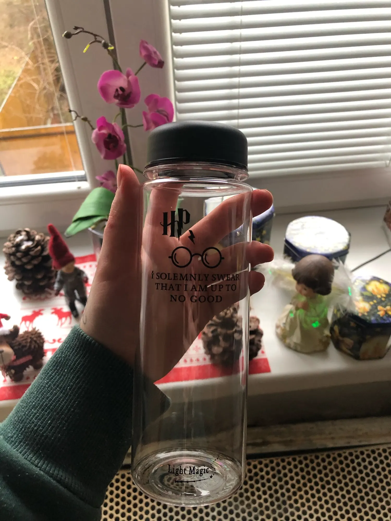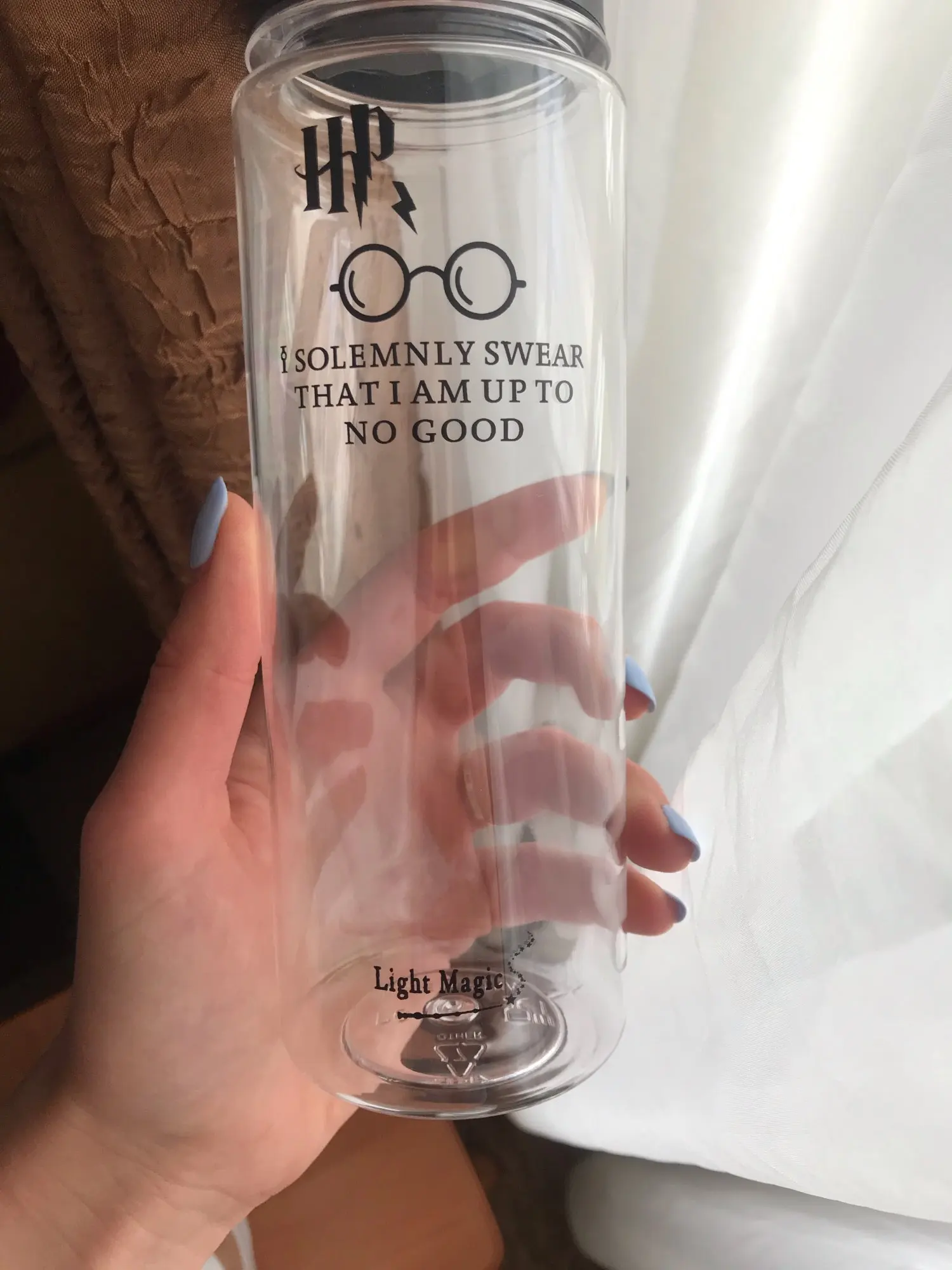 Хорошая бутылочка, была хорошо упакована. Пришла целая, без сколов и трещин. Неприятного запаха не было. Принт нанесен качественно, четкий. Пить удобно, крышка закручивается плотно.