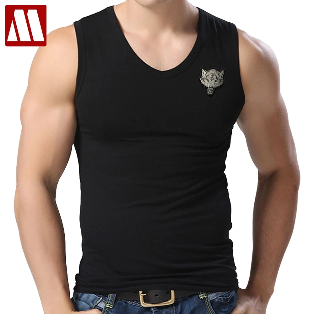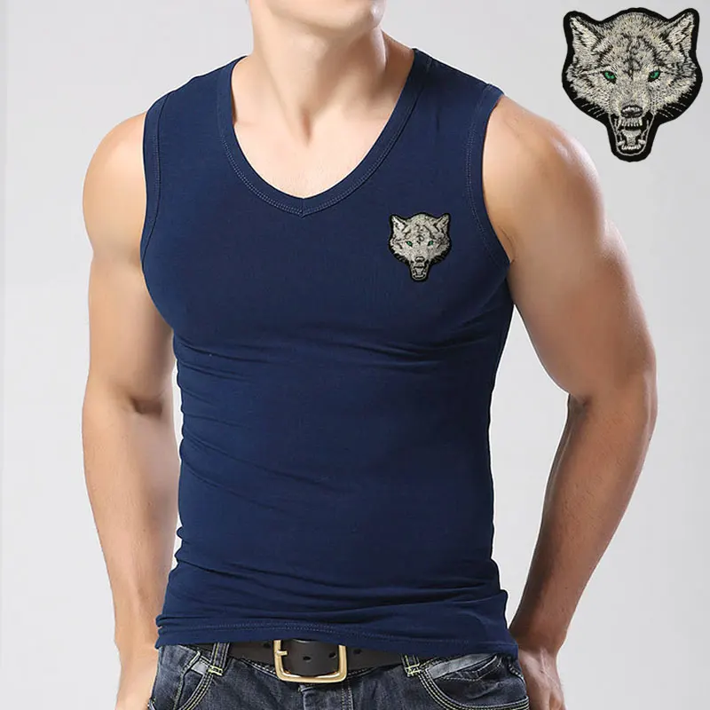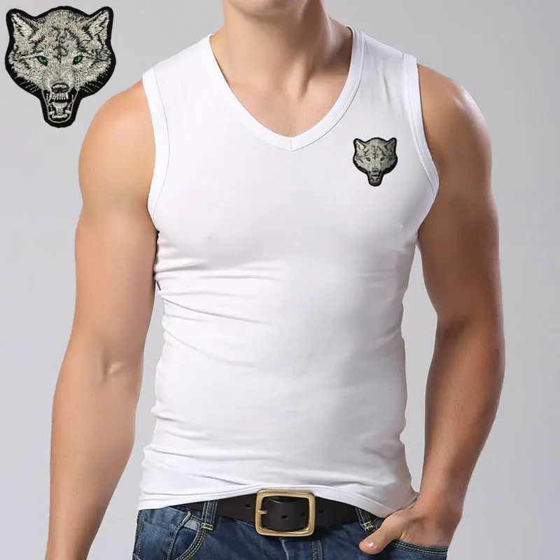 Мужские майки, хлопковые майки без рукавов с волком для мужчин, бодибилдинг, Майки с волком, белые повседневные летние майки, M-XXXL