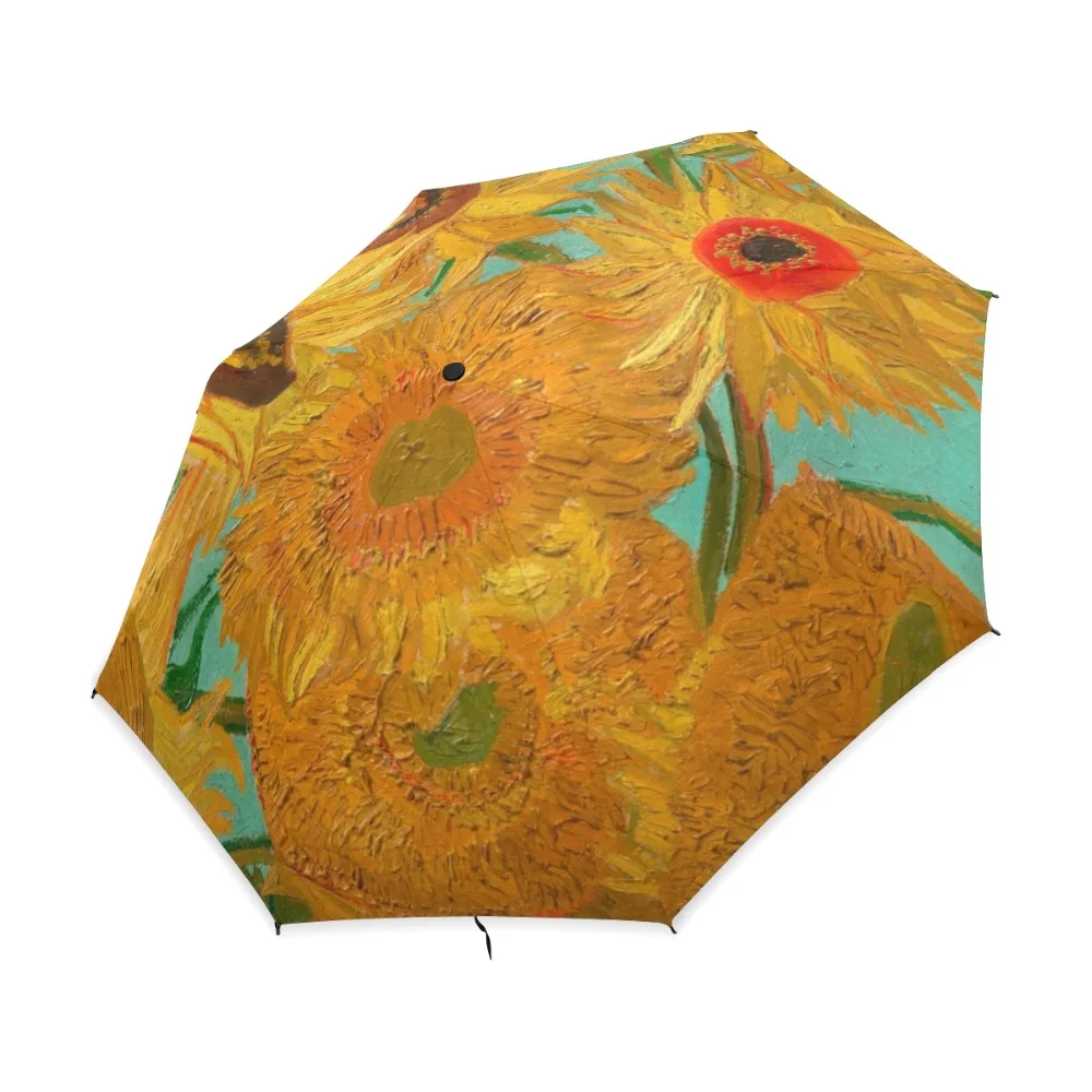 Женский зонт с подсолнухами Ван Гога, складной автоматический зонтик для защиты от солнца, дождя и ветра, для мужчин, для любителей картин