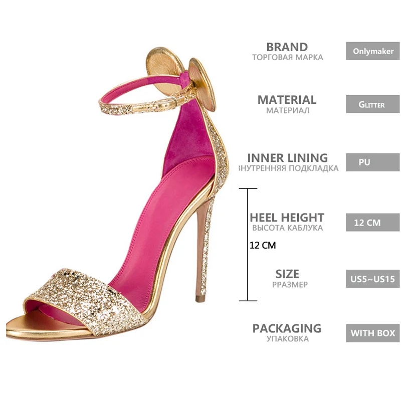 OnlymakerЖенская обувь с открытым носком; Блестящие свадебные туфли на высоком тонком каблуке 12 см; Роскошные золотистые свадебные туфли; Сандалии большого размера