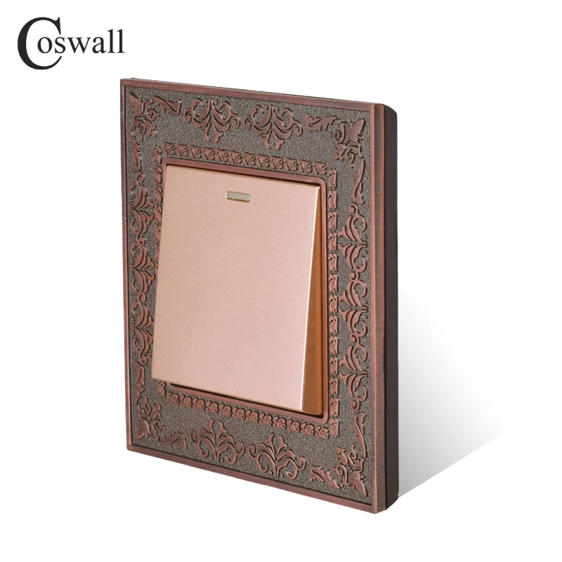 Coswall, 1 комплект, 1 выключатель, настенный выключатель, 4d-тиснение, ретро панель из цинкового сплава, роскошный светильник ключатель света, 16 А, 10 250 В переменного тока