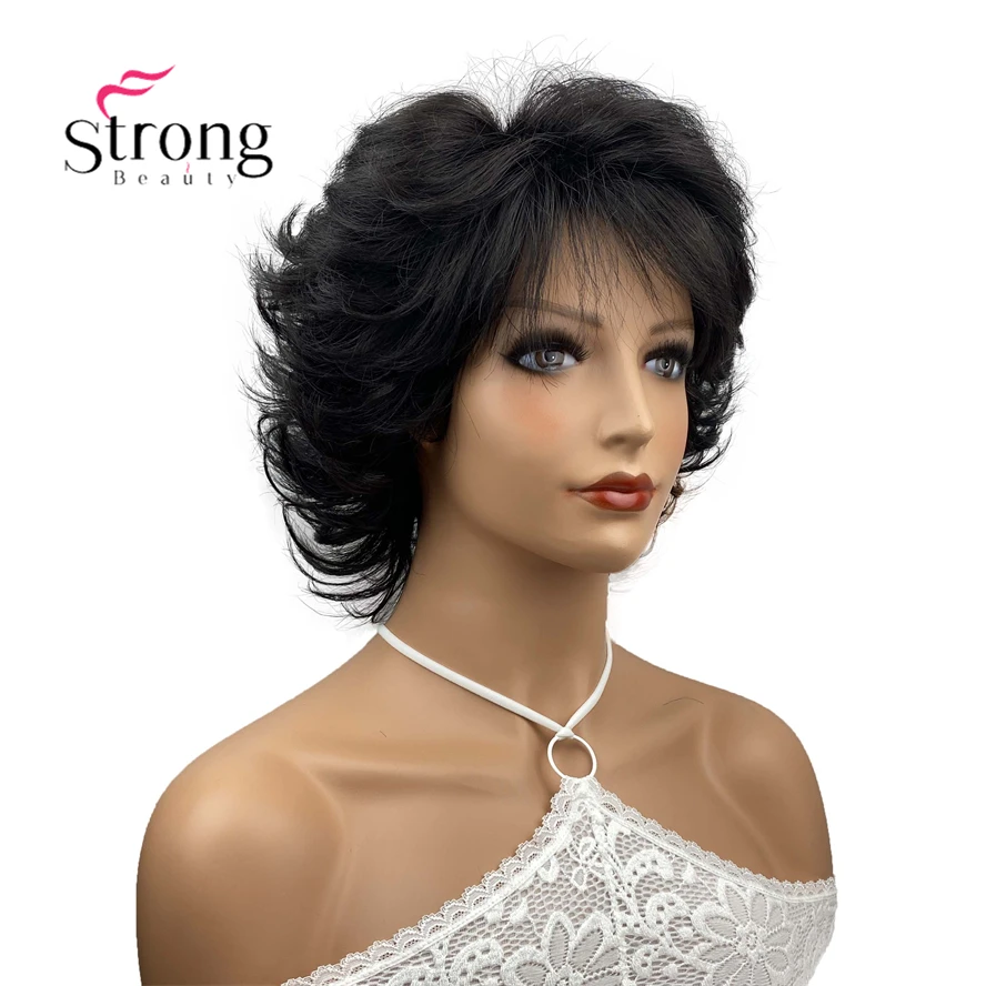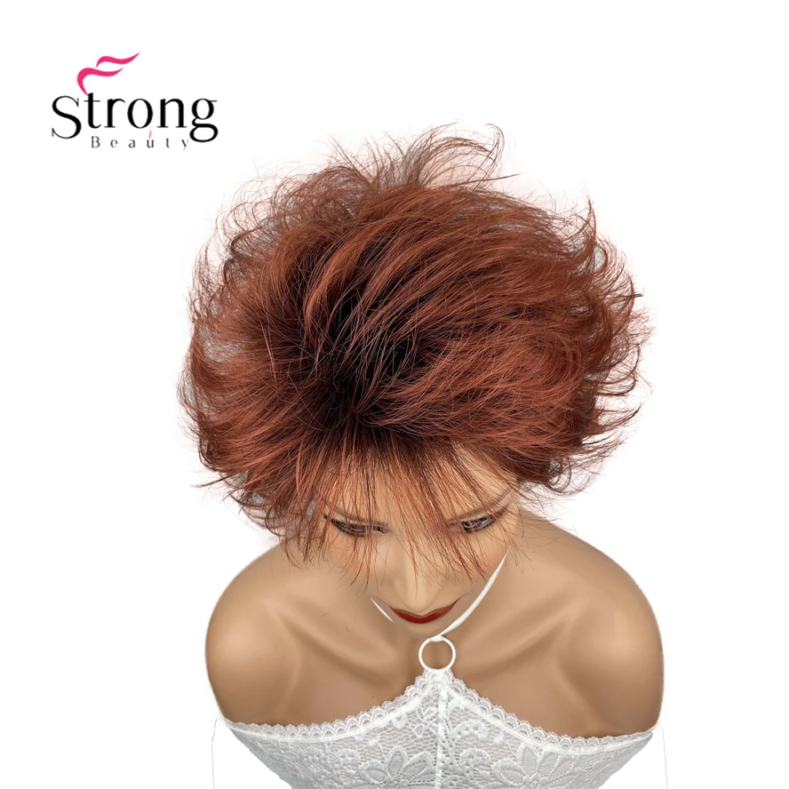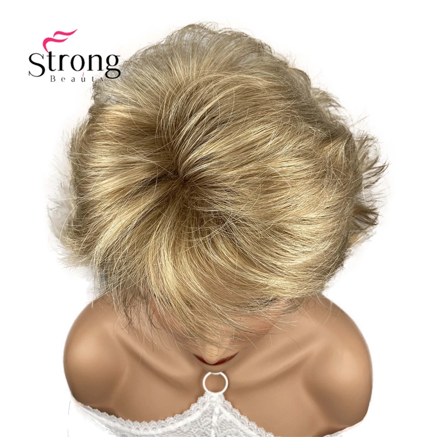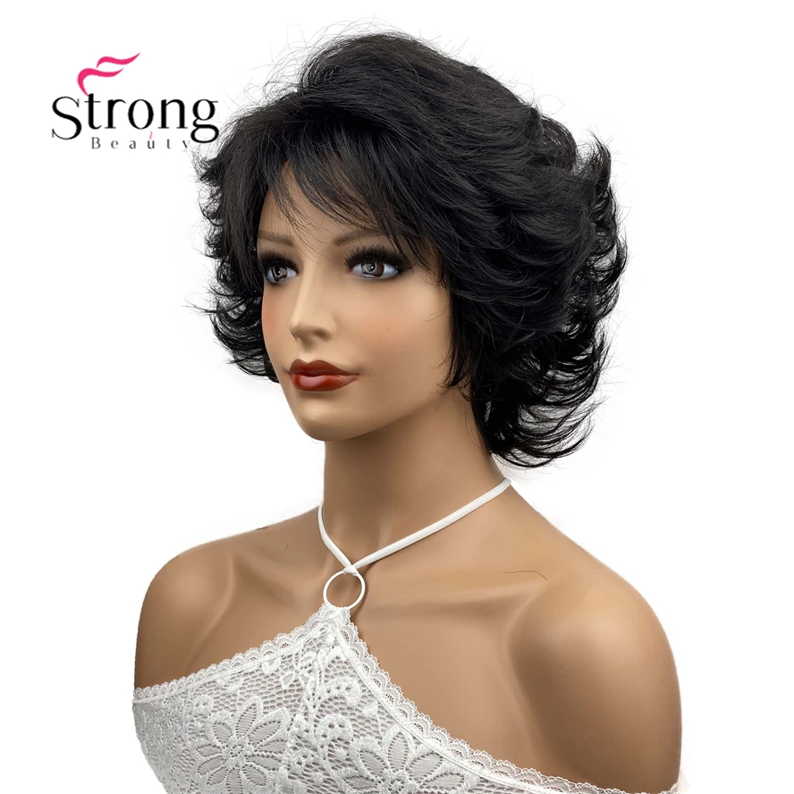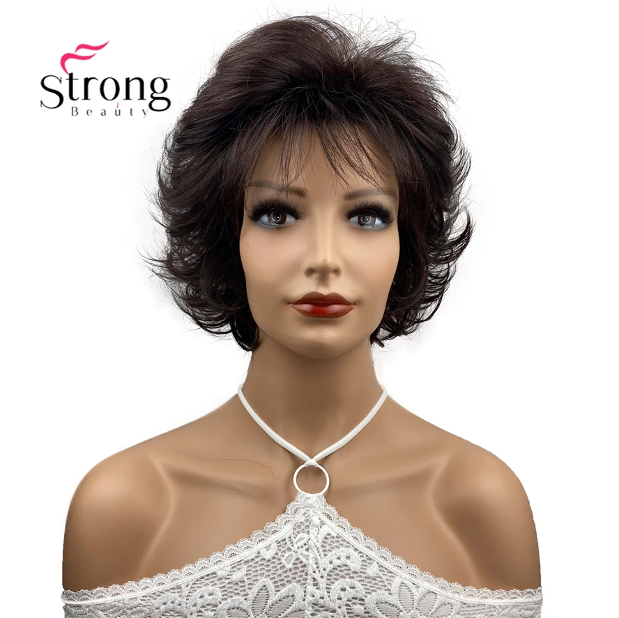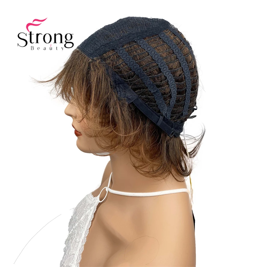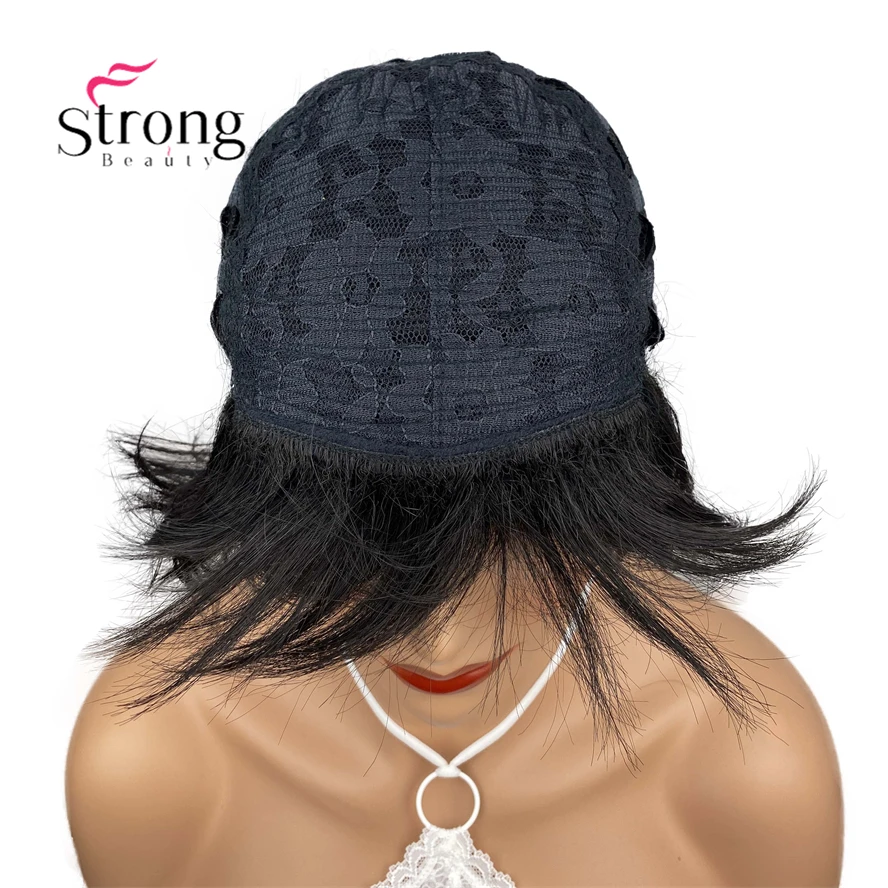 StrongBeauty Женские синтетические парики, многослойный Короткий прямой парик с вырезом Пикси