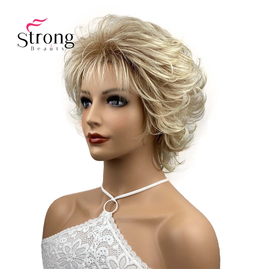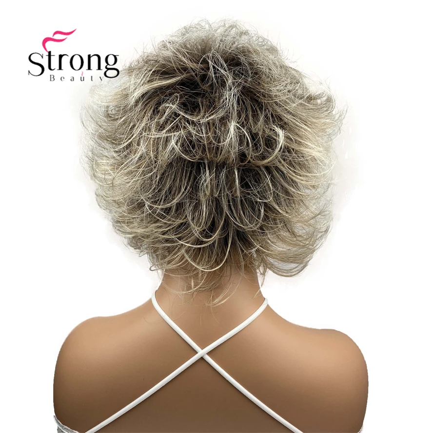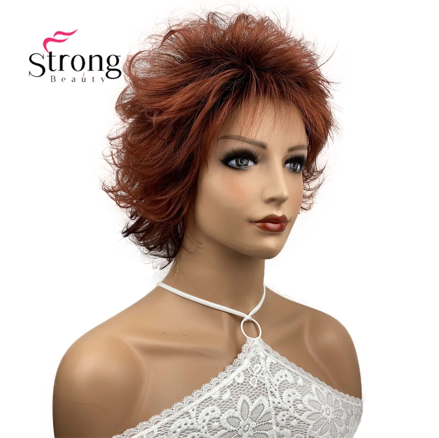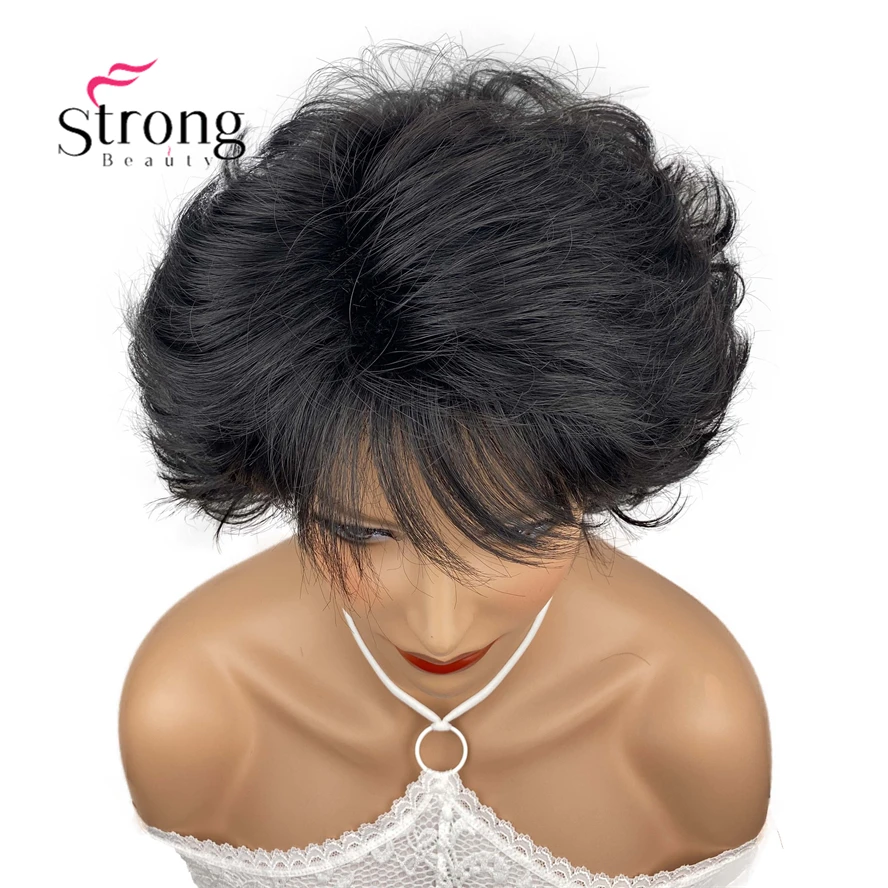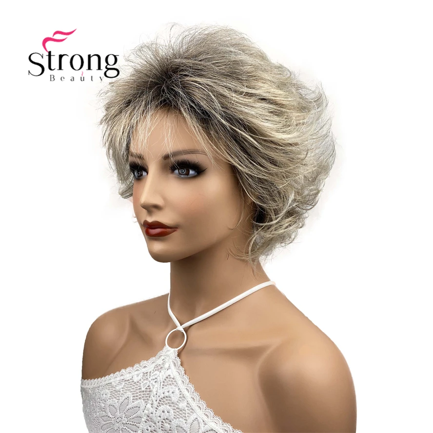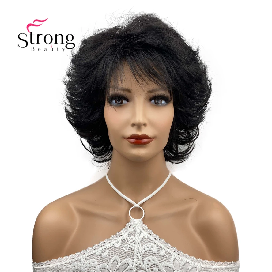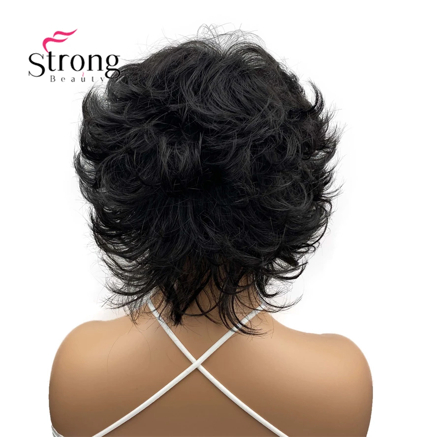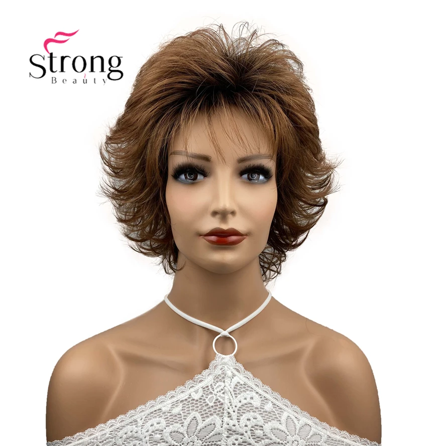 StrongBeauty Женские синтетические парики, многослойный Короткий прямой парик с вырезом Пикси