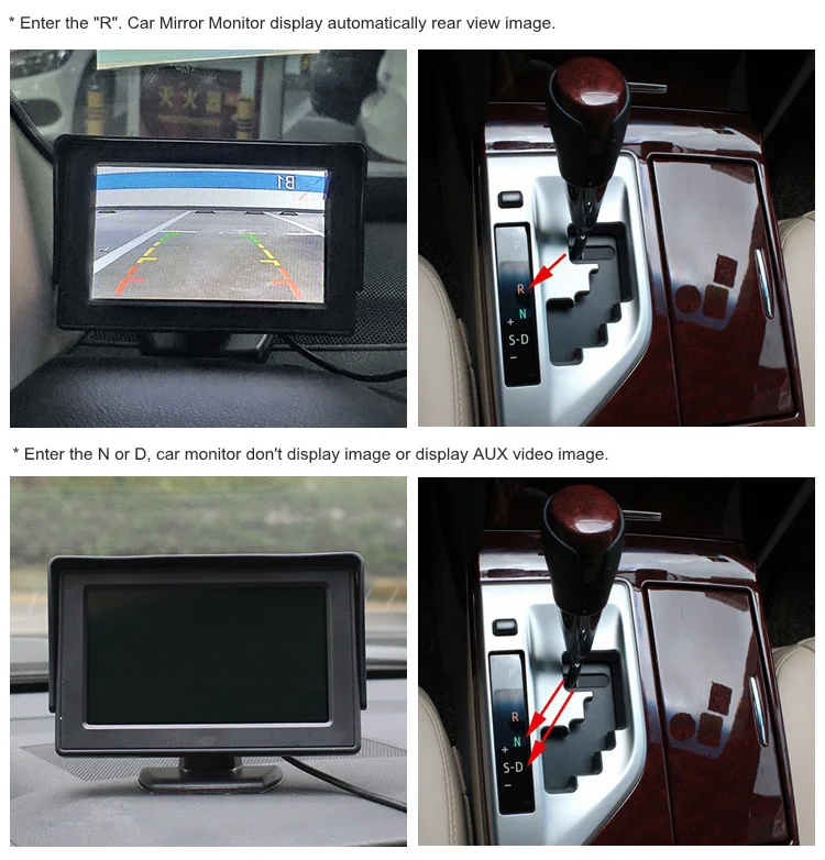 Показать размер ноги: 4,3 дюймов.Дисплеев: TFT-LCD Разрешение: 480 (в) x 272 (В) Мощность: 2 Вт Видео вход: AV1/AV2 Формат сигнала: PAL/NTSC/AUTO Яркость: 250 CD/m & sup; 2; Контраст: 300: 1 Номинальное напряжение: 12 В постоянного тока