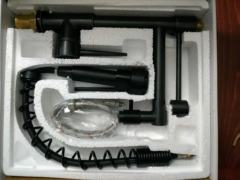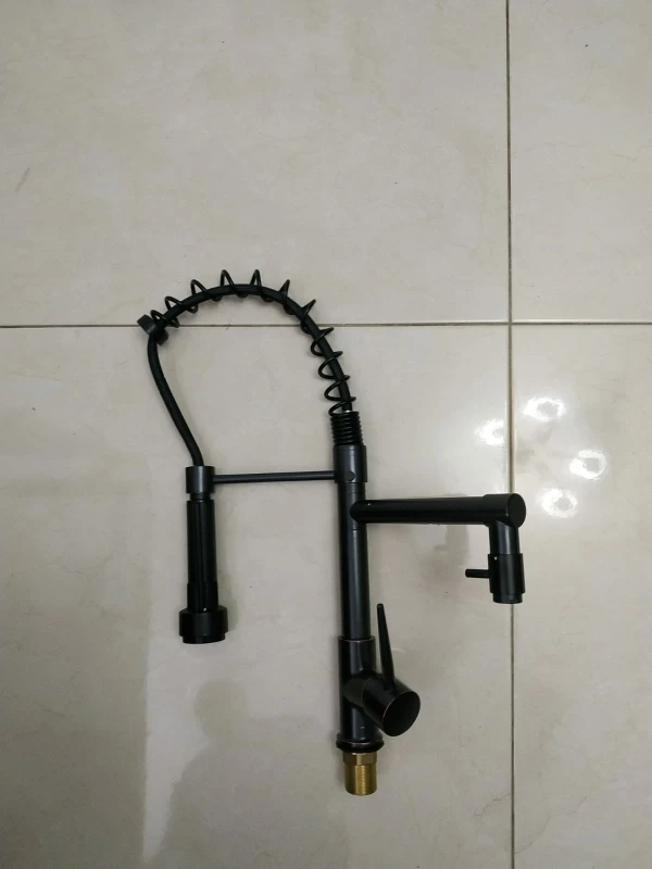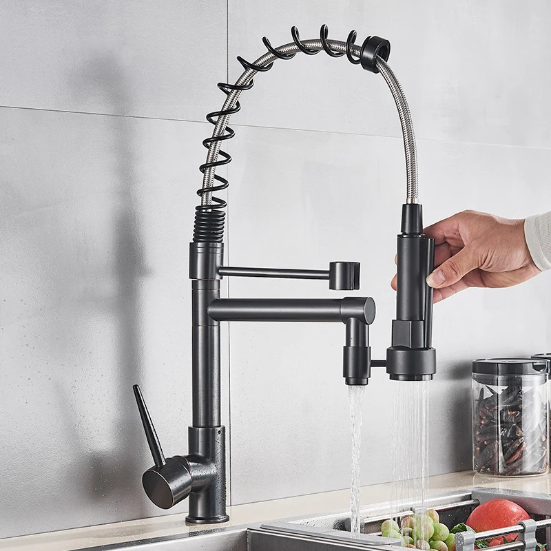 Пружинный смеситель для кухни, вытяжной с двойным носиком, одним рычагом и возможностью поворота на 360 градусов