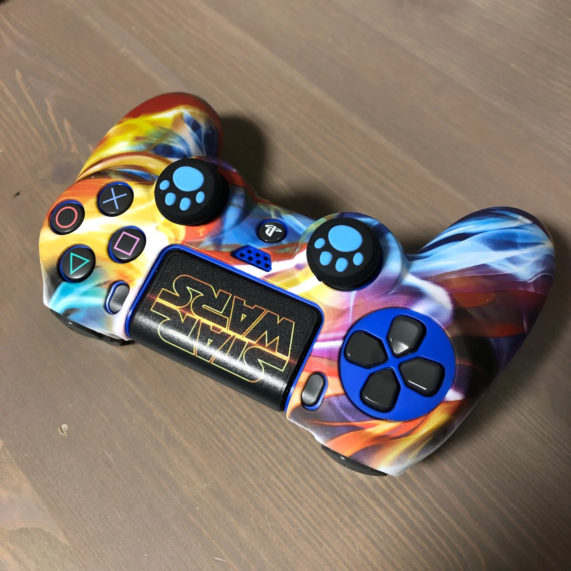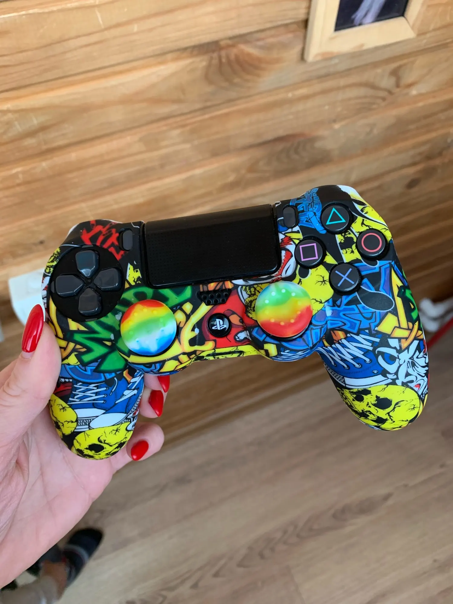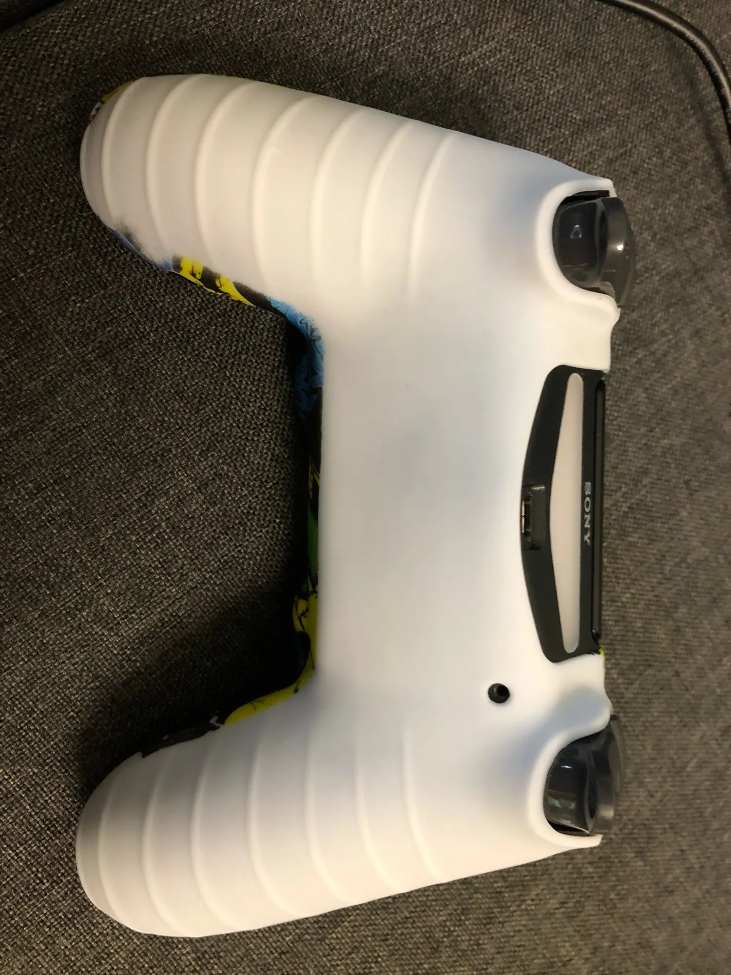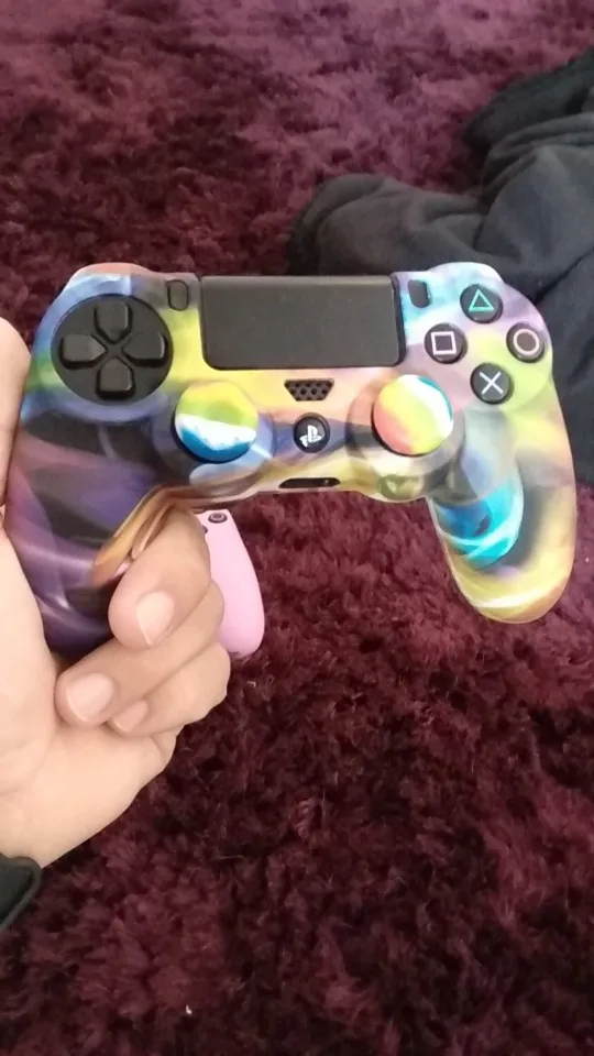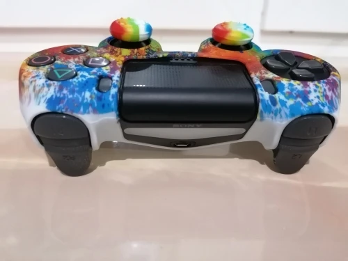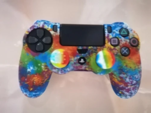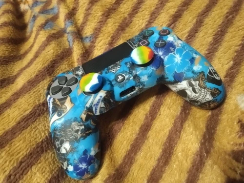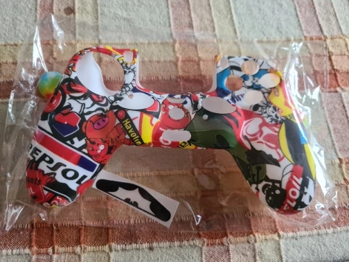 Плюсы: руки не скользят и не потеют, сидит плотно(в основном) . Минусы: воняет ужасно, у динамика не сидит нормально (бугор) накладки на стики странные. Сам чехол в использовании прикольный.