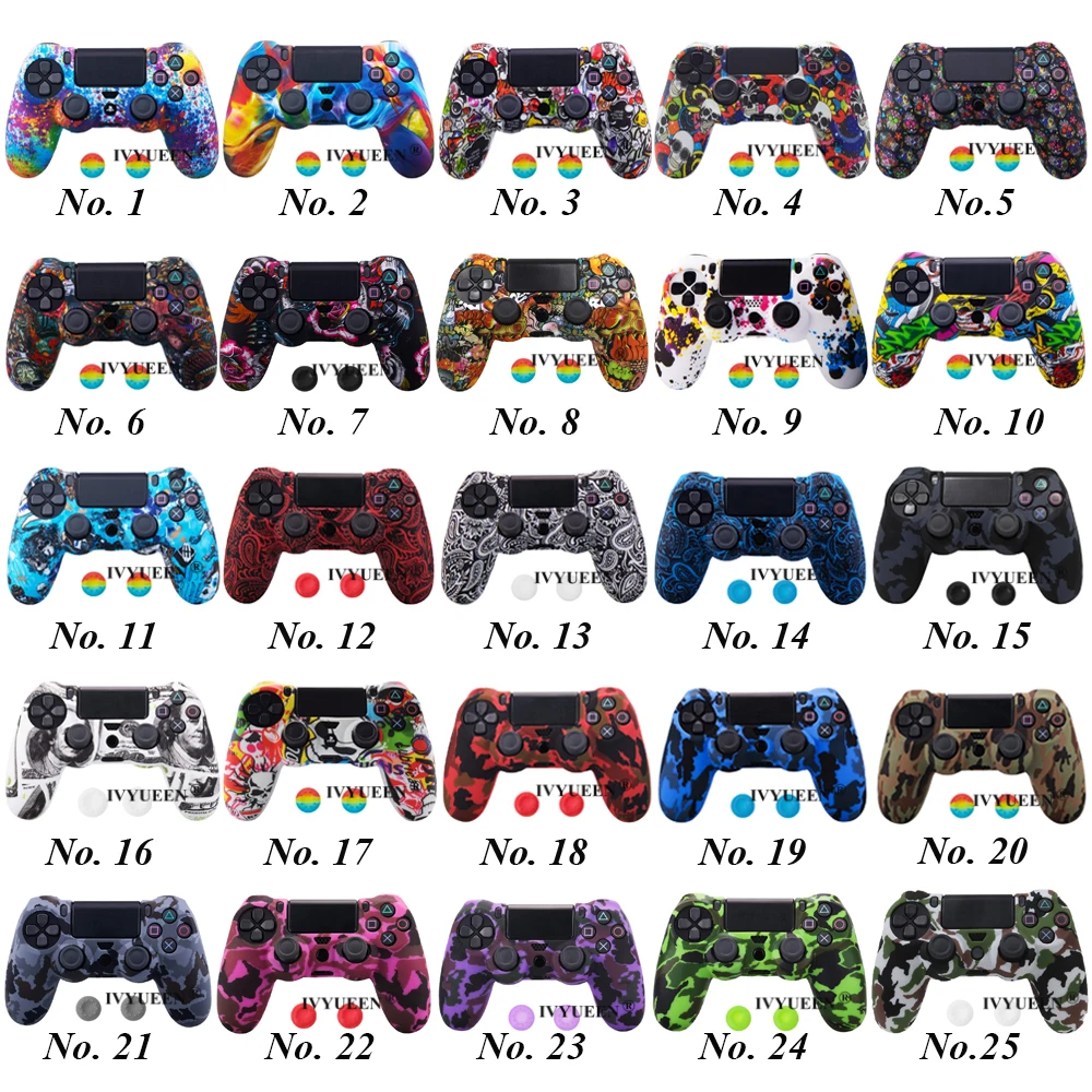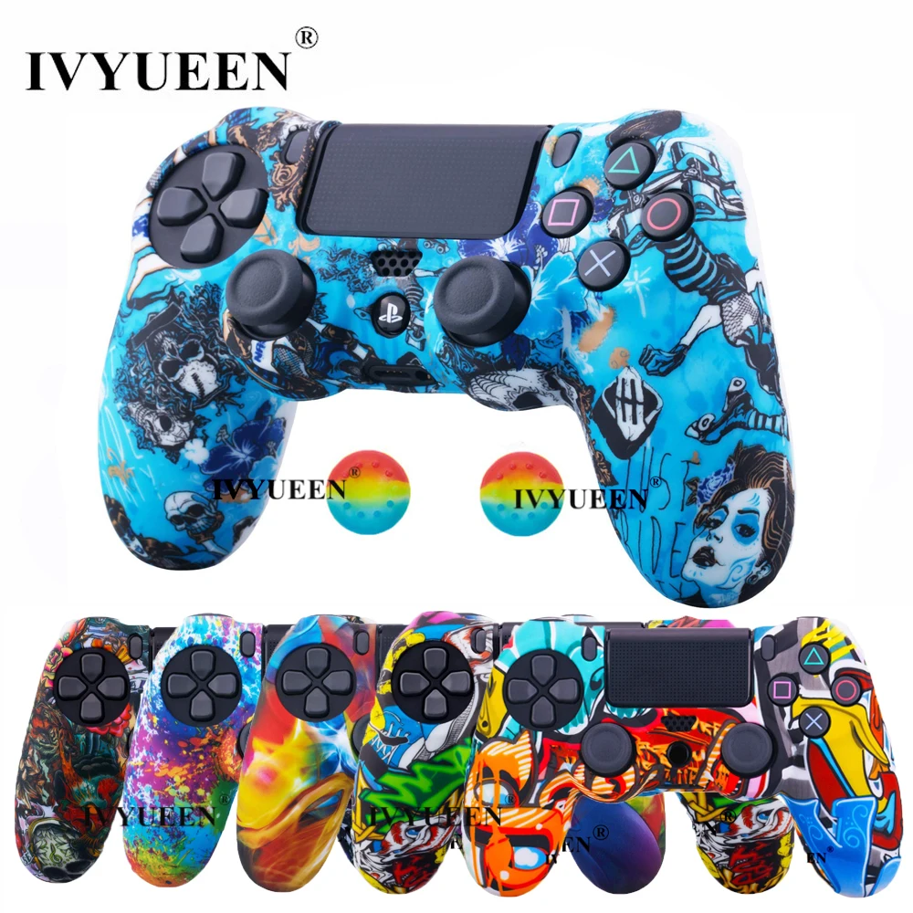 Силиконовый чехол IVYUEEN для контроллера Sony Dualshock 4 PS4 DS4 Slim Pro, защитная оболочка камуфляжный чехол + колпачки для большого пальца для PlayStation 4