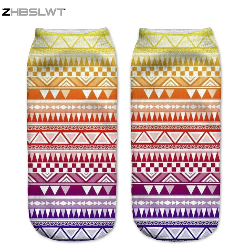ZHBSLWTновинка; Женские носки с объемным принтом в ацтекском стиле; Удобные чулочно-носочные изделия с низким вырезом; Medias Calcetines Calzini Chaussette