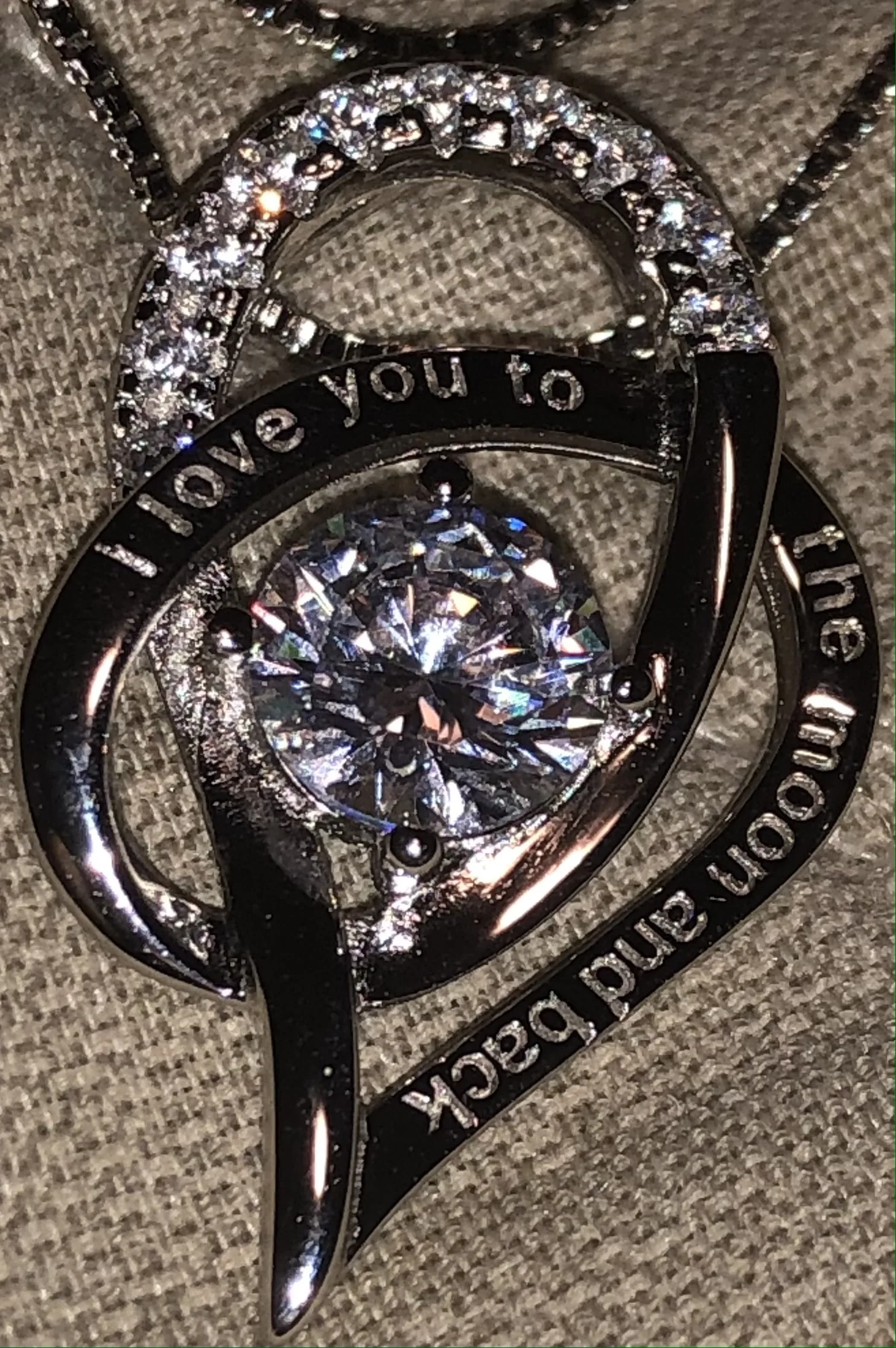 Valentine Gift Elegant Love you to The Moon and Back Genuine 925 Sterling Silver Love Heart Pendant Necklace