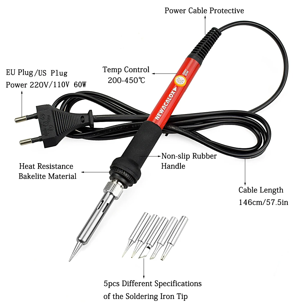 Электрический паяльник NEWACALOX, 60 Вт, с регулируемой температурой, для ЕССША, сварочный набор, отвертка, клеевой пистолет, нож для резьбы и ремонта
