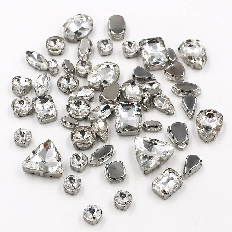 Свадебные украшения смешанной формы прозрачные белые стеклянные стразы с серебряной основой для аксессуаров одежды