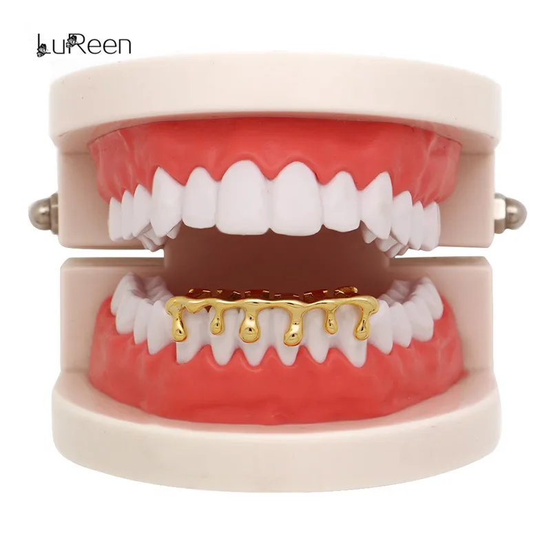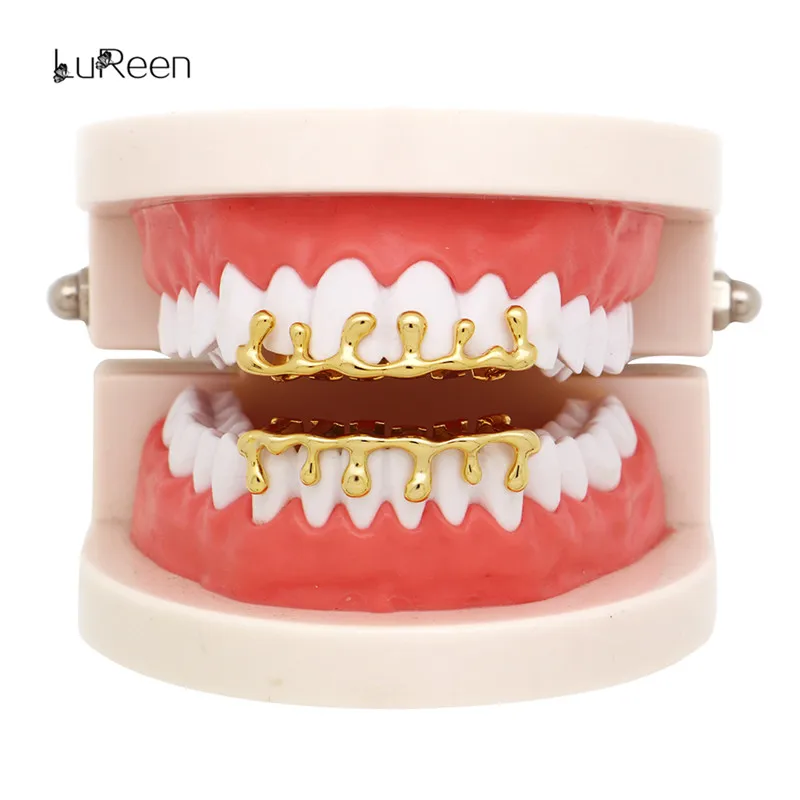 Декоративные коронки для зубов LuReen, капельки под золото в форме капельки для верхних и нижних зубов в стиле хип-хоп, вечерние ювелирные изделия для косплея