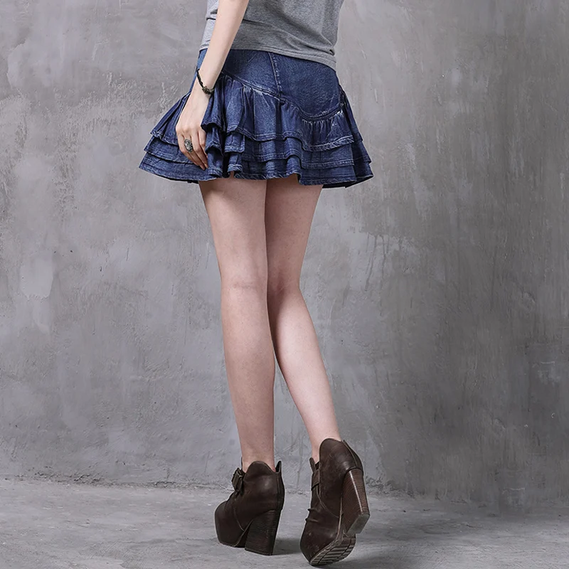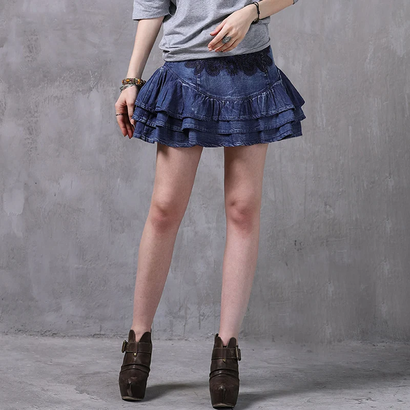 Женские юбки, 2017, Yuzi.may, Boho, новые, джинсовые, многослойные, Emroidery, с оборками, по подолу, безвредные для кожи, бальное платье, Saia Feminina X2210
