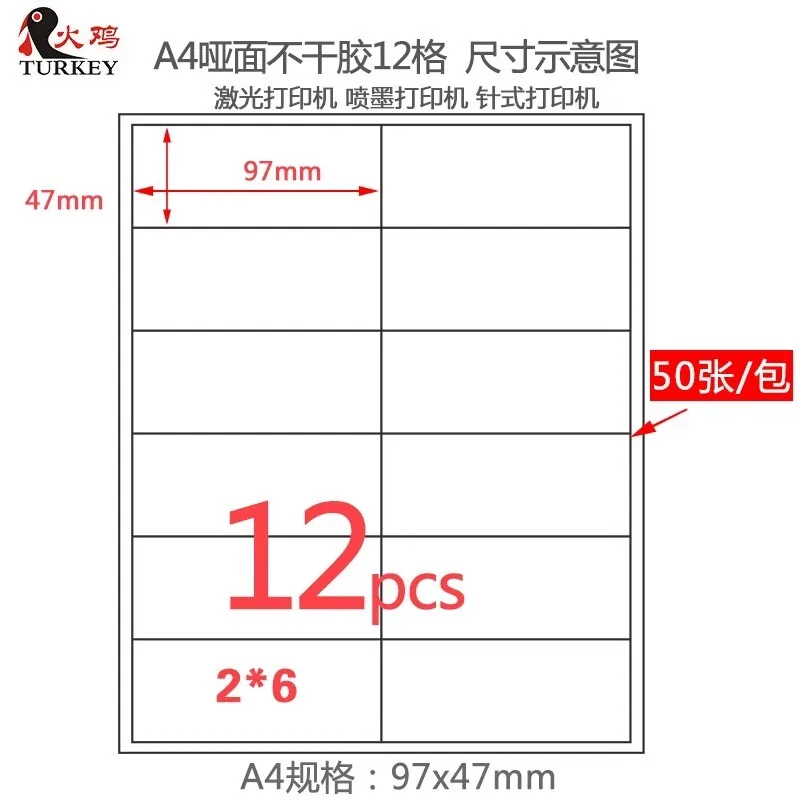 Наклейки самоклеящиеся, GL-11, 50 листов, 600 этикеток, 12 шт.А4, для лазерногоструйного принтера, 97x47 мм