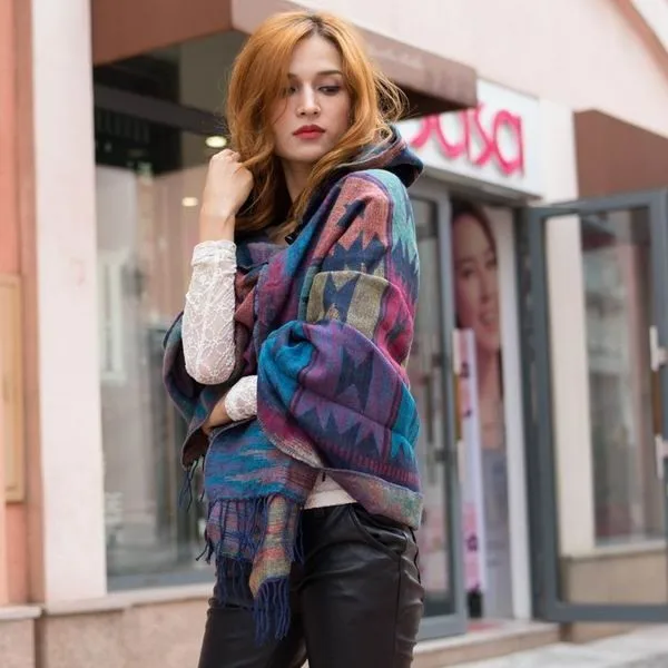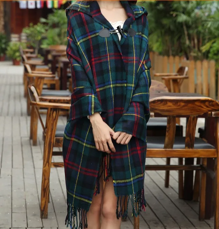 Новинка 2021, Женское зимнее пальто с капюшоном в стиле бохо, накидка-пончо, женские шали, женское одеяло из искусственного кашемира, шарф, женская одежда