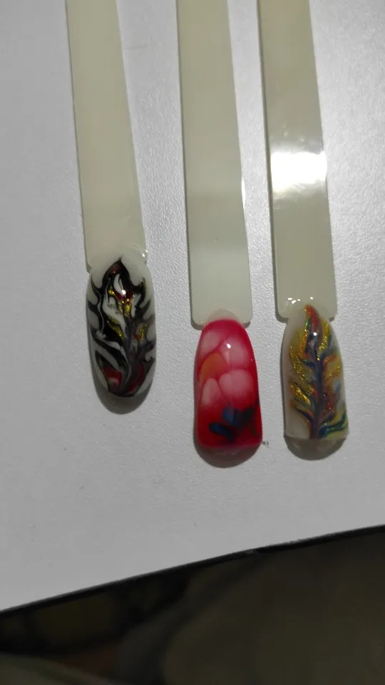 Наносить обычную базу, сушить, затем специальную базу тонким слоем не судите, сразу цветом расставляете точки или линии в произвольном порядке, ждете пару секунд и сушить, потом топом