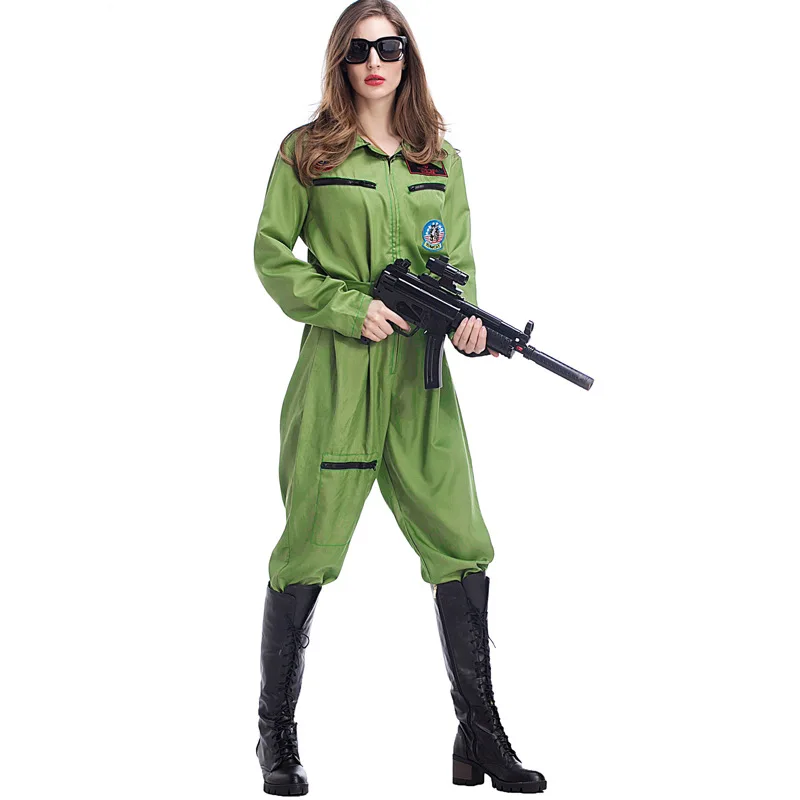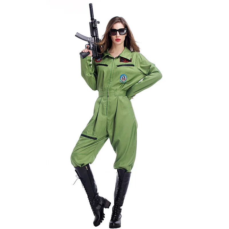 Для женщин летный Костюм зеленые женские туфли на выход; Авиатор пилота солдат армии Военная форма Армейский зеленый парашютный комбинезон