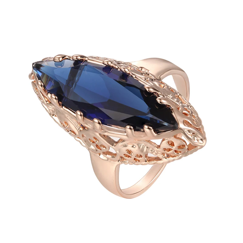 Модные украшения, женские кольца цвета розового золота 585 пробы, большие красные украшения для вечеринок с сине-зеленым камнем