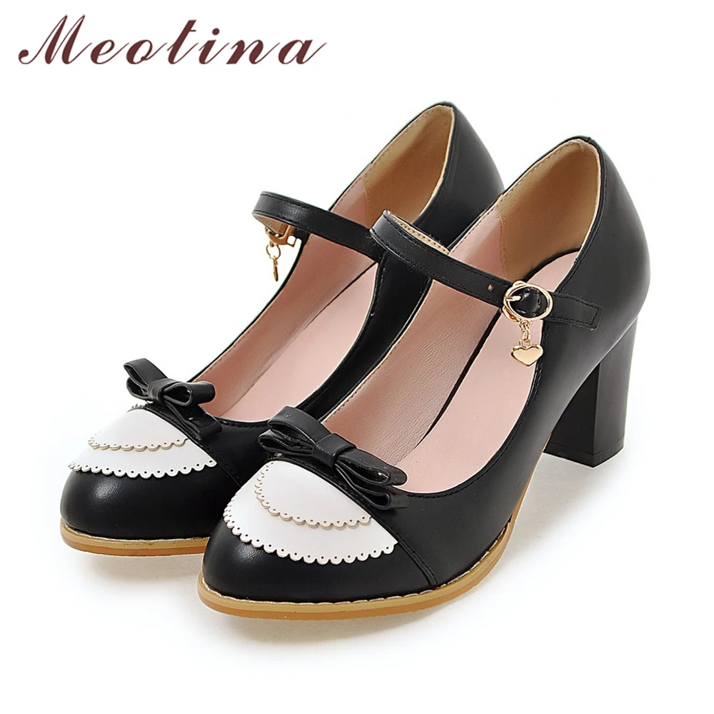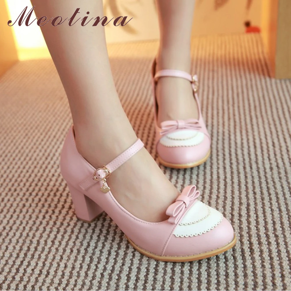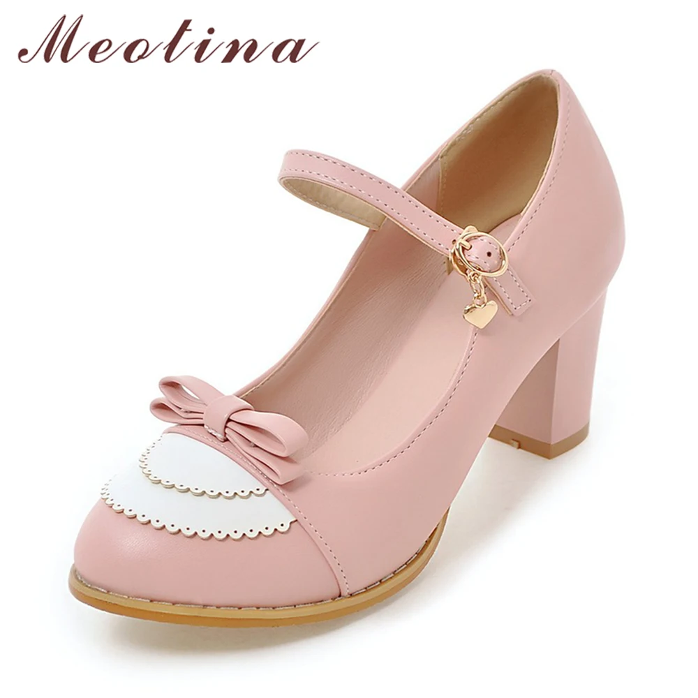 Туфли Meotina женские на высоком каблуке, туфли-лодочки, повседневная обувь с бантом, на толстом высоком каблуке, розовые, большие размеры 9 45