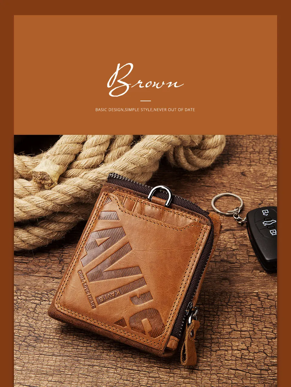 Кошелек мужской из натуральной кожи, с отделением для монет и карт
