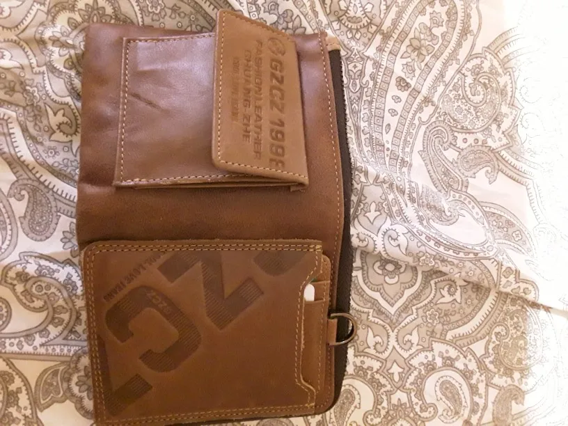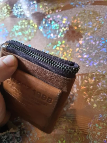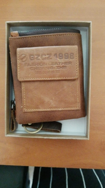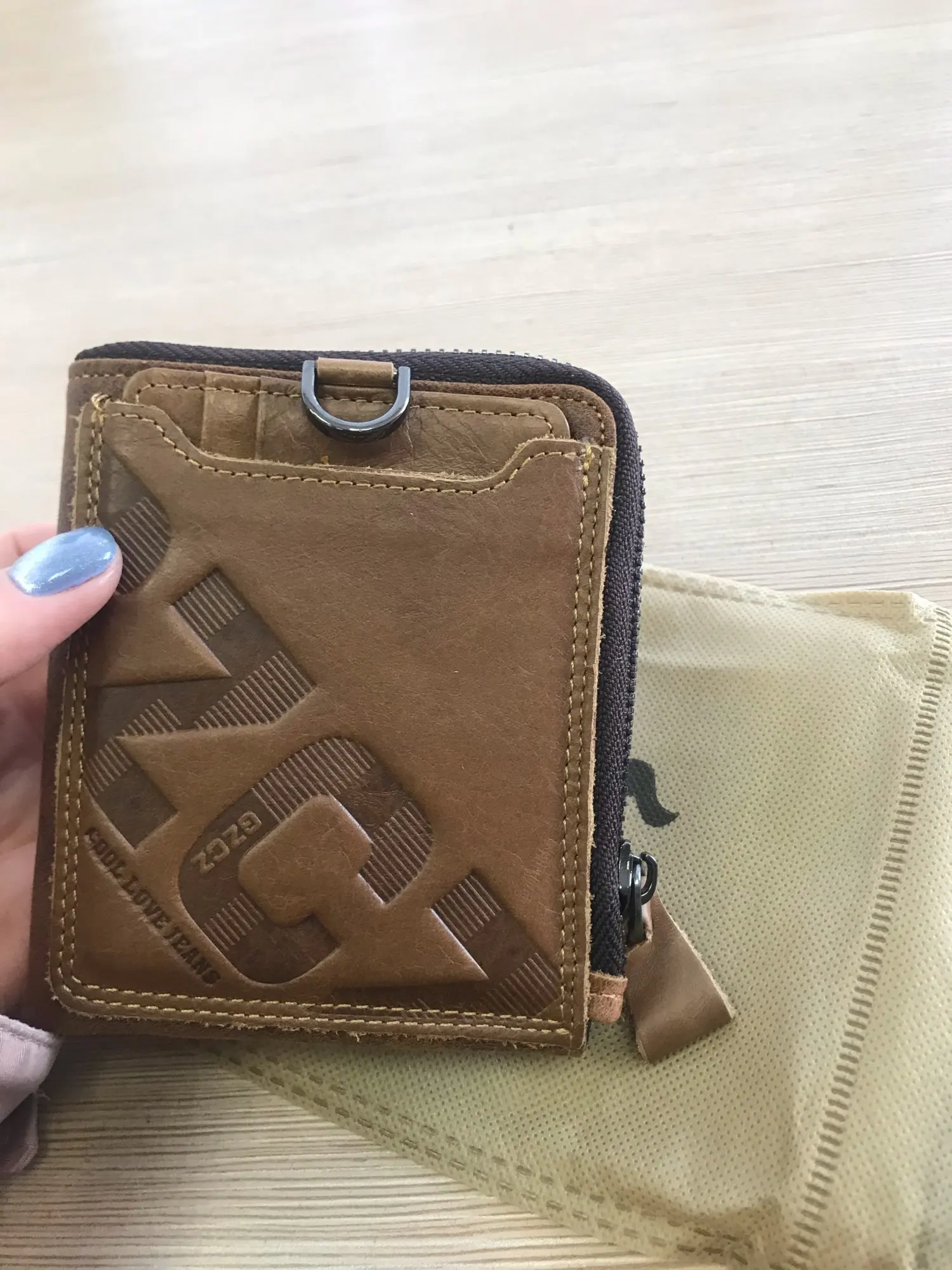 Доставка быстрая. Считать дни не буду, для меня приемлемо. Это не кошелек, это реально мини клатч. Присутствует легкий запах химозы, с чем связано не знаю, полагаю что с тиснением на клатче. Проверку водой прошел, как положено. Внутри фирмового мешочка, уложен пробник, который можно проверить огнем. Проверять не стал, хватило теста с водой. Что смущает. Это собачка на замке, не до конца сведено ушко, хотя застежка и не выпадает. Второй момент, прошито вроде крепко, однако с одного, внешнего края вытащились два стежка. Засовывал в карман, как обычный портмоне, по привычке. Но еле засунул в джинсы. Великоват для кармана. Полагаю, что из-за этого. И третий момент, на сгибе пополам молния выворачивается и как ее правильно согнуть, что бы не повредить в будущем молнию, пока не придумал. Внешний вид отличный. На ощупь мягкий. В целом, весьма доволен. Ловил по акции, цена почти рубль, приемлемая. Бонусом к покупке пришла кожаная висячка для ключей.