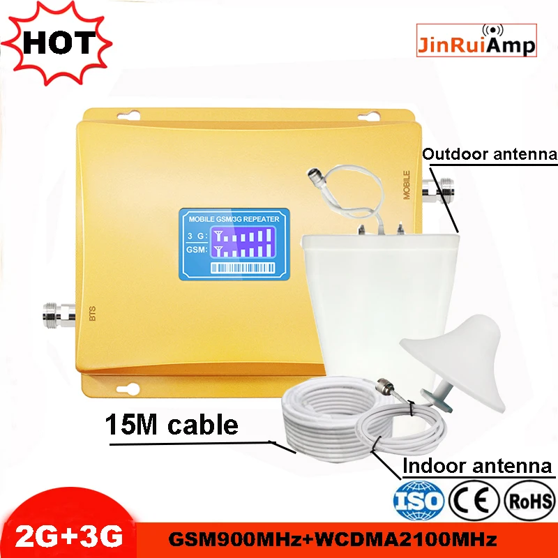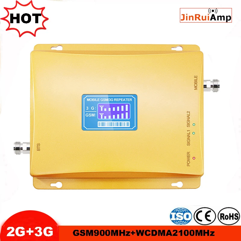 Горячий ЖК-дисплей 3G W-CDMA 2100 МГц GSM 900 МГц двухдиапазонный усилитель сотового сигнала GSM 900 2100 UMTS Репитер сигнала GSM усилитель