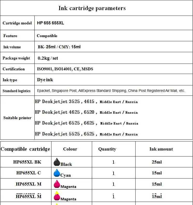 Номер моделиCompatible hp 655xl