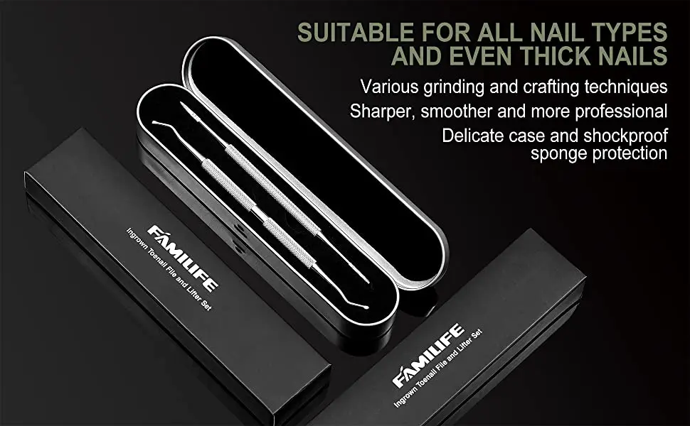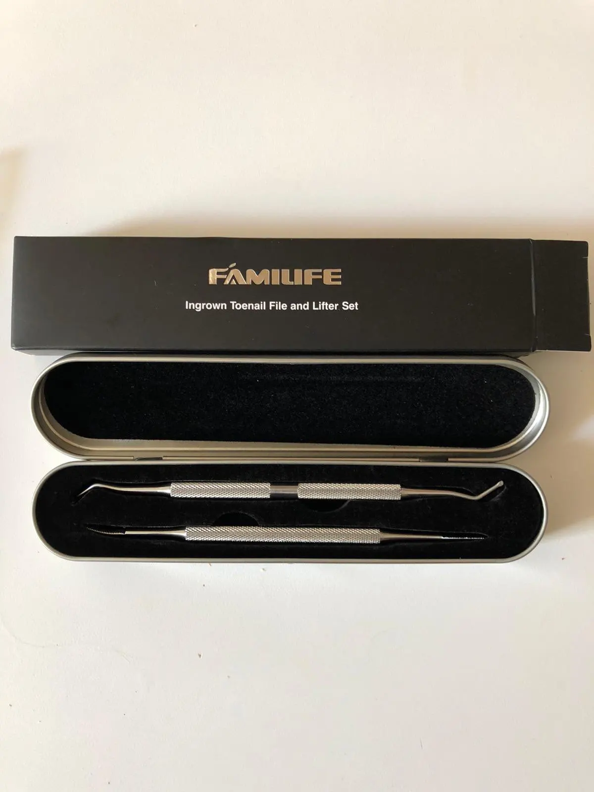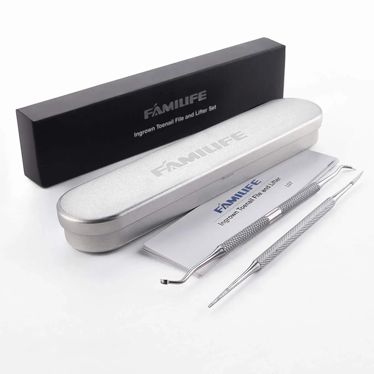 FAMILIFE 100% нержавеющая сталь вросший пилочка для ногтей и подъемник двусторонний чехол для хранения (вросший пилочка для ногтей)