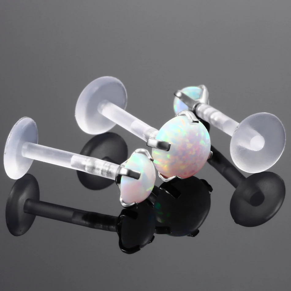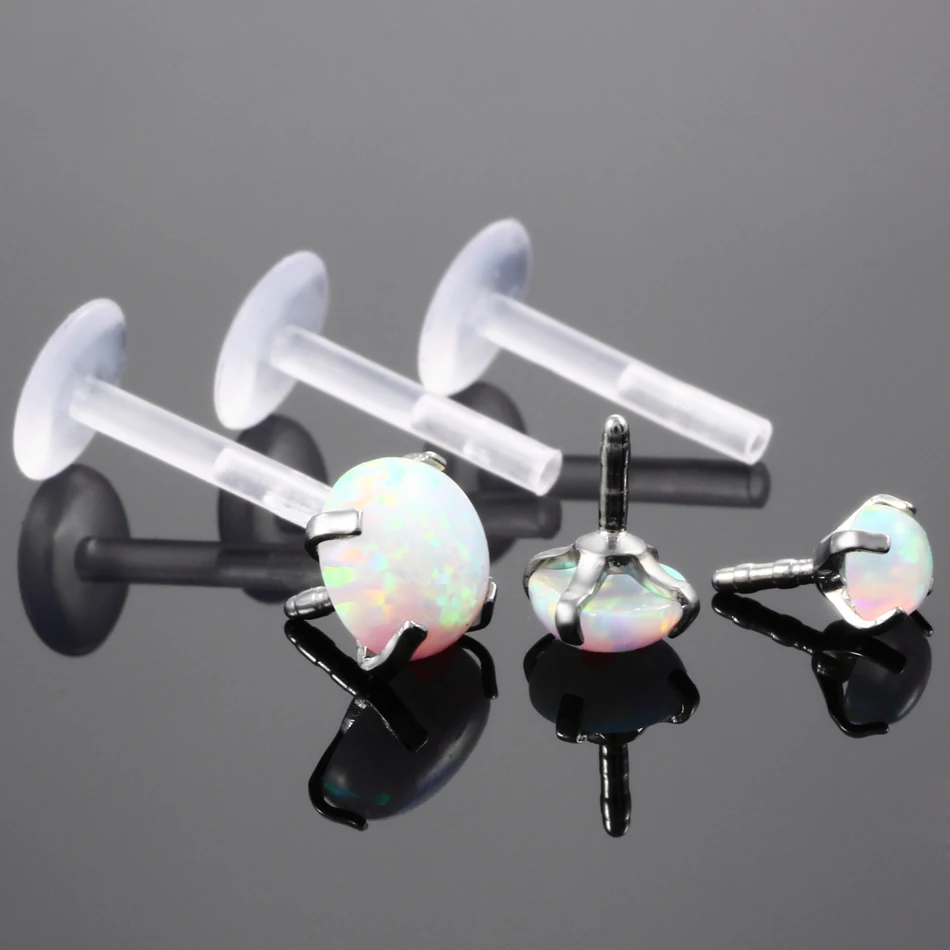 1 шт. ПТФЭ Биопласт опал 17 губ кольца для пирсинга внутренняя нить Опал Камень губы Ушные Кольца для пирсинга пирсинг для уха Козелка сексуальное ювелирное изделие для тела