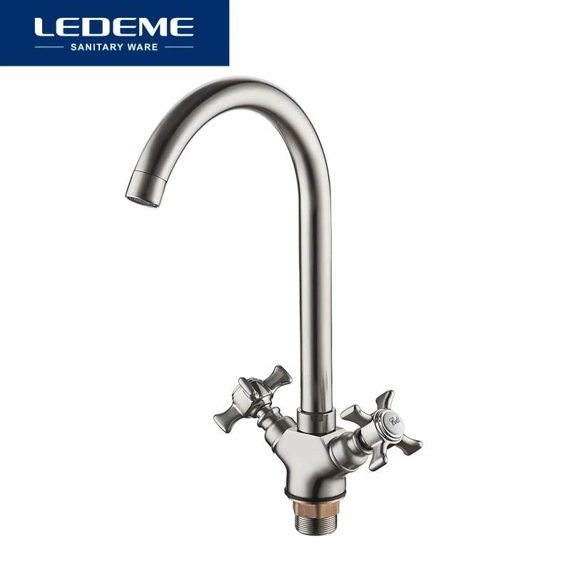 LEDEME Смеситель для кухни с гайкой латунь Цвет: сатин L4311A-2