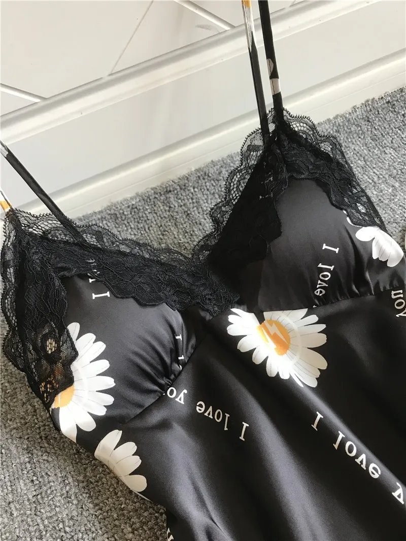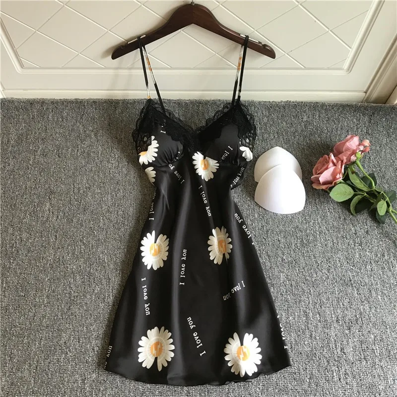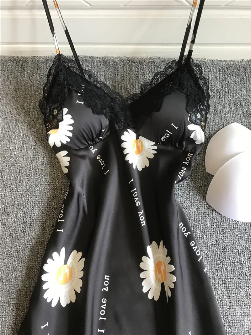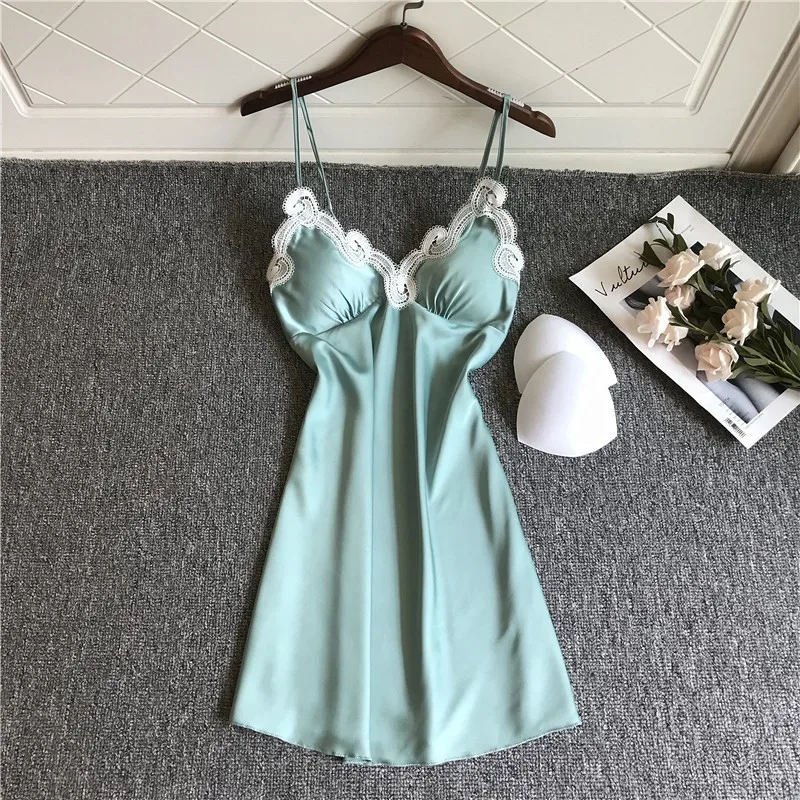 Ночная рубашка с кружевной отделкой, Женская атласная ночная рубашка, сексуальная пижама на тонких бретелях, летняя ночная рубашка, кимоно с v-образным вырезом