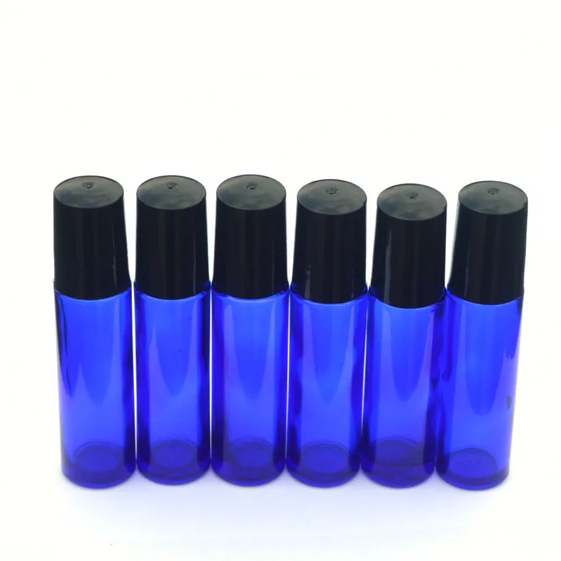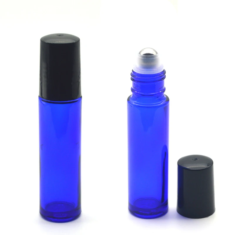 10 мл синий стеклянные бутылочки с роликом пустой флакон для духов с эфирным маслом 10 мл рулонный черный пластиковый флакон с крышкой