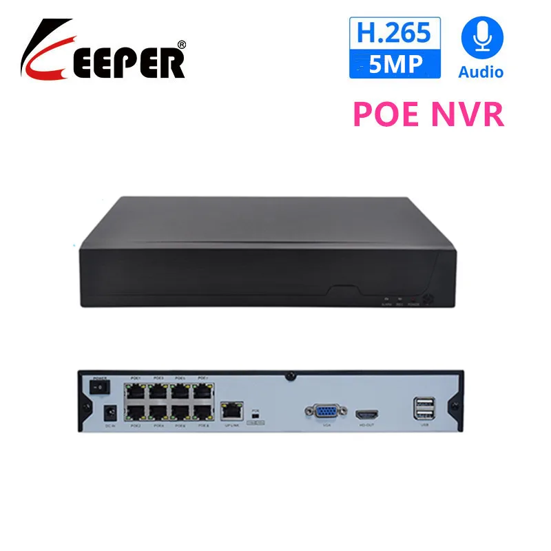 Видеорегистратор для системы безопасности, регистратор H.265 5 МП, POE, NVR для 8 каналов, 2 МП5 МП, ONVIF, P2P, CCTV