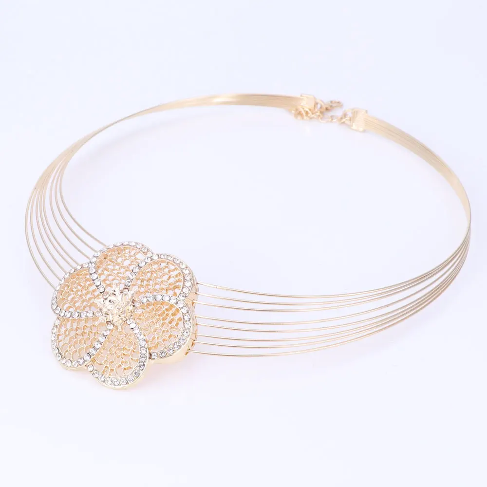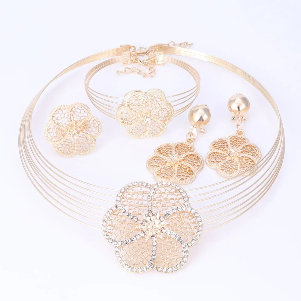 Дубай золотые ювелирные наборы нигерийские Свадебные африканские бусы Кристалл ожерелье серьги браслет кольцо цветок кулон ювелирный набор