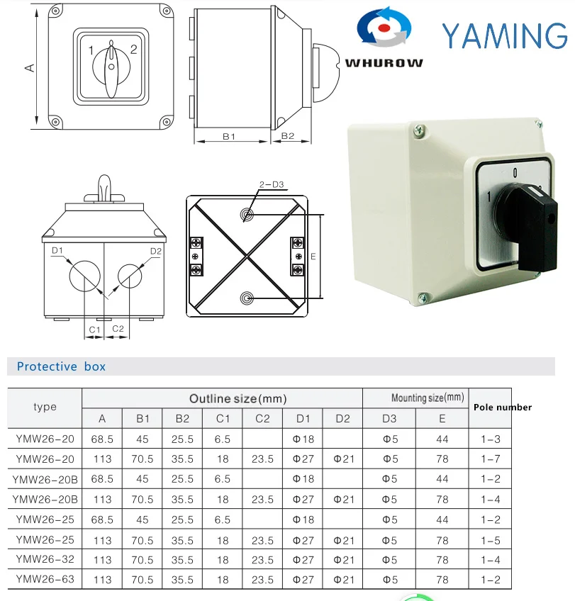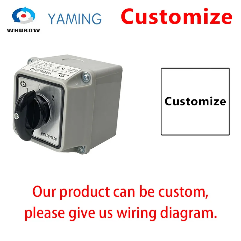 Yaming Электрический YMW26-202 м IP65 поворотный кулачковый главный переключатель 20A 2-полюсный 3-позиционный с водонепроницаемым корпусом