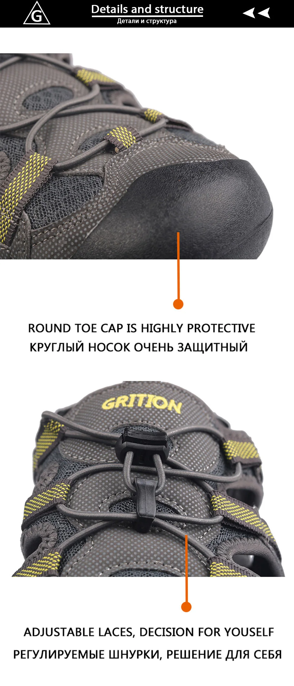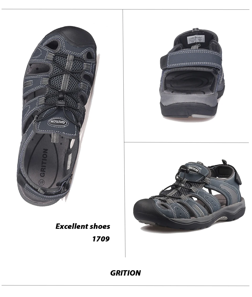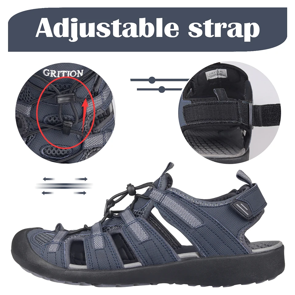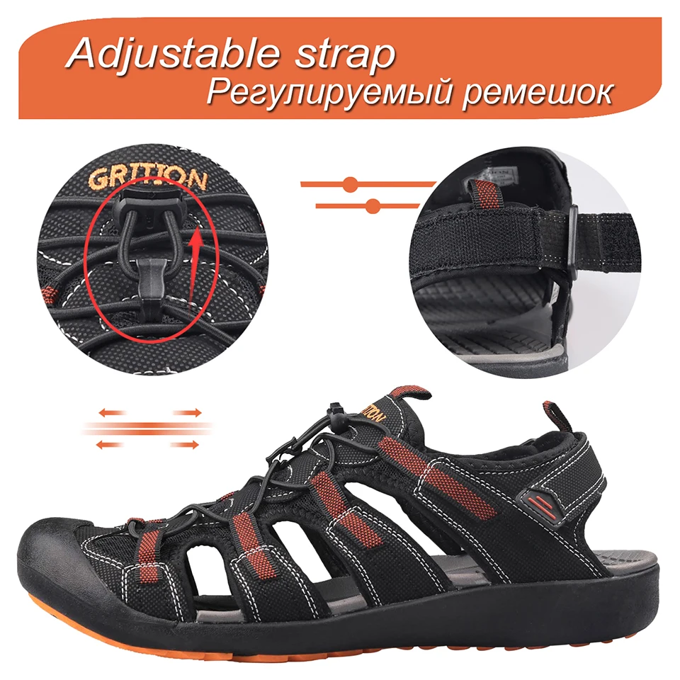 Сандалии мужские GRITION, на плоской подошве, дышащие, с закрытым носком, для пляжа, для походов, для лета, 2021